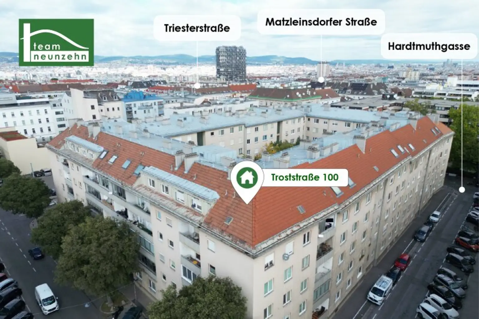 Zum Verkauf steht eine Neubauwohnung im 1. Stock eines gepflegten Wohnhauses in der Troststraße, unweit der Triester Straße und des Fortunaparks.