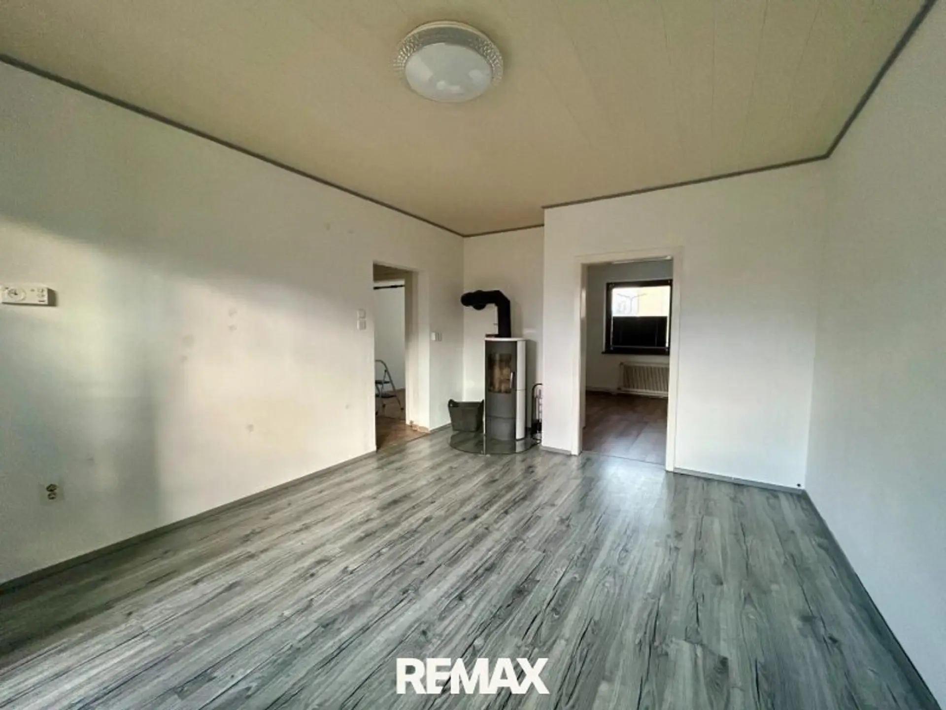 Der Wohn- und Essbereich bildet das Herzstück der Wohnung. Ein eigener Schwedenofen sorgt hier für eine besonders gemütliche Atmosphäre und angenehme Wärme in der kalten Jahreszeit. Von diesem Bereich aus gelangt man direkt auf den Balkon mit Südwest-Ausrichtung, der viele Sonnenstunden und einen schönen Platz zum Entspannen bietet.