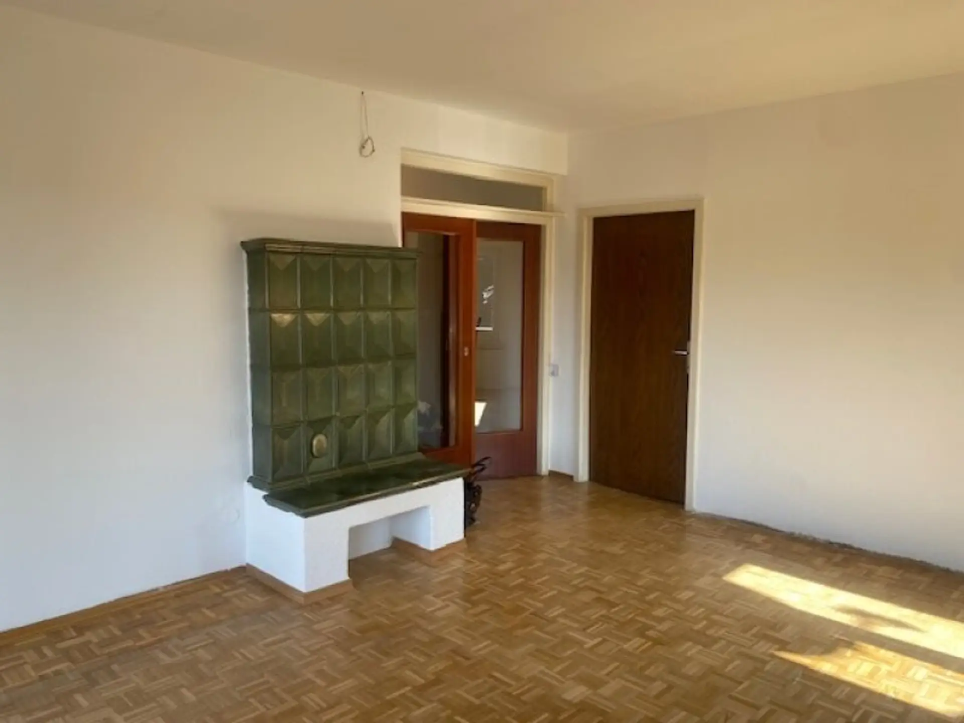 Die nach Westen ausgerichtete Wohnung überzeugt mit viel natürlichem Licht und einem schönen Fernblick auf den Ulrichsberg. Ein besonderes Highlight ist der traditionelle Kachelofen, der sich über drei Räume erstreckt und für eine besonders behagliche Wohnatmosphäre sorgt.