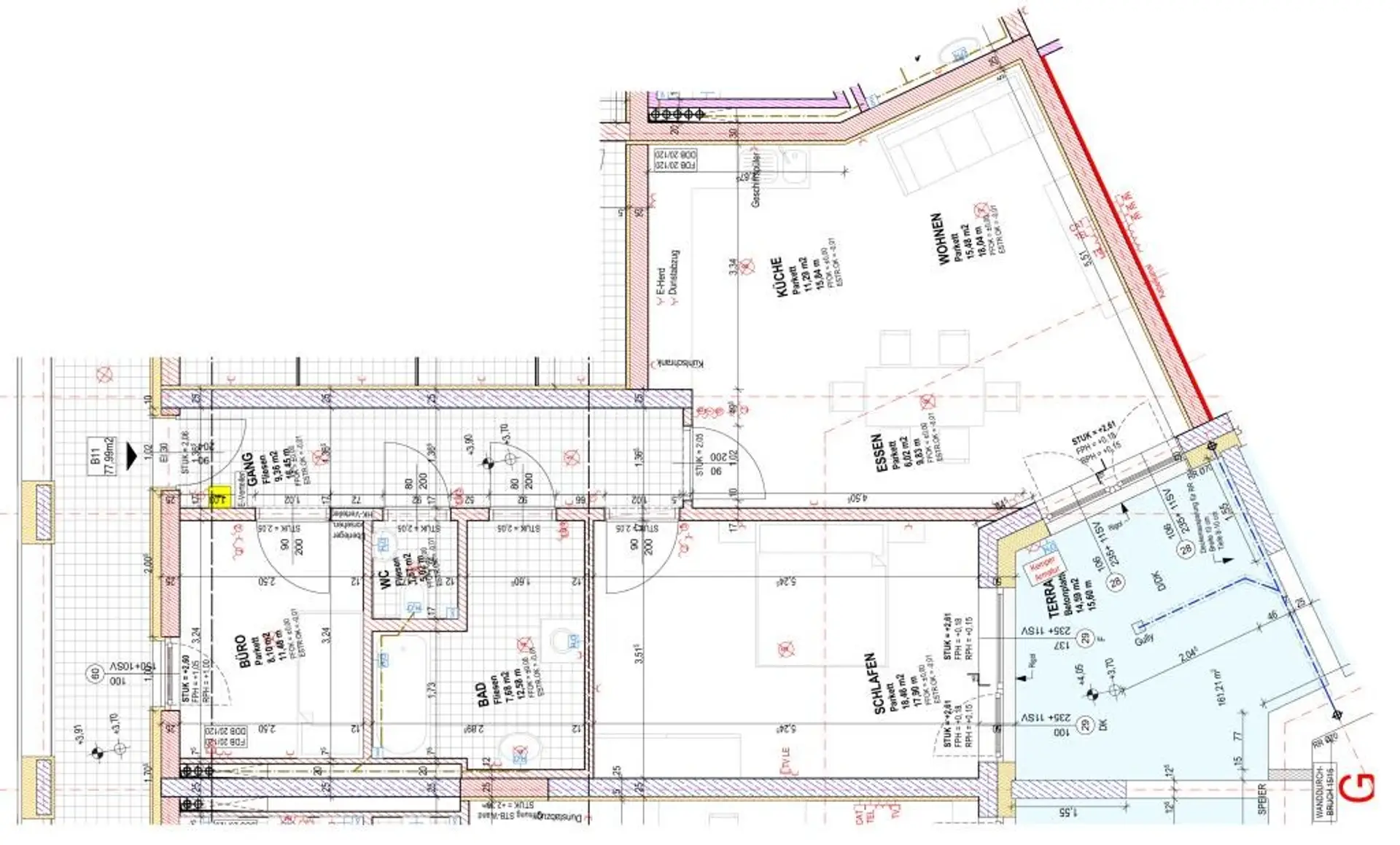 Das Mietobjekt verfügt über: Vorraum, Büro, Bad, WC, Wohn-/Esszimmer mit Küche, Schlafzimmer und einer Terrasse im Ausmaß von ca. 14,50 m²
