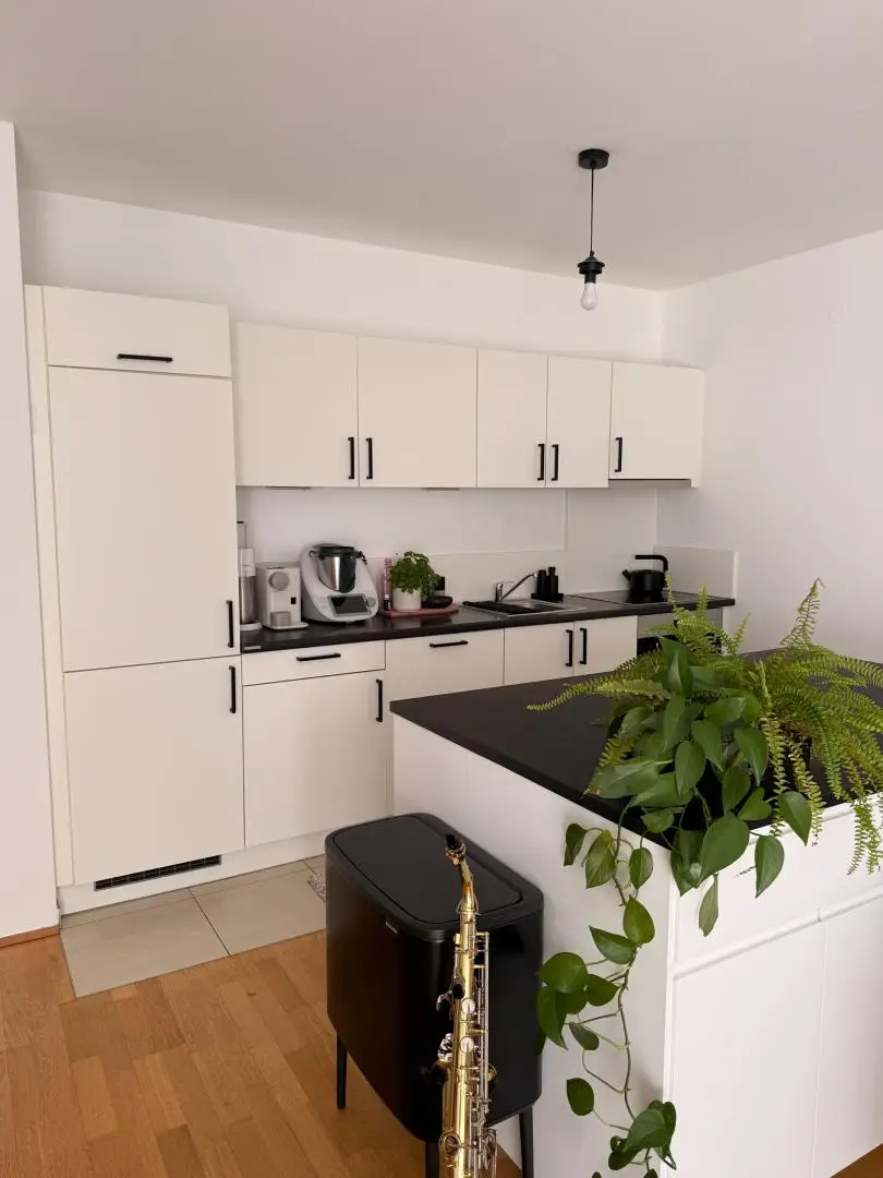 Die Ausstattung ist hochwertig und zeitlos - die Wohnung ist mit einer Küche ausgestattet.