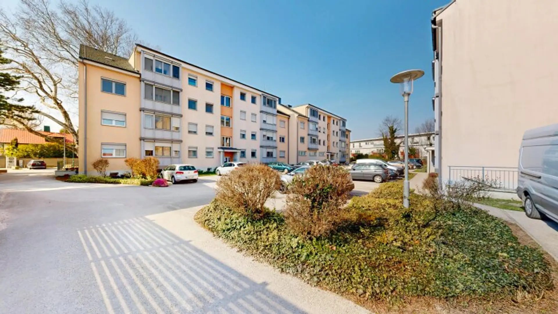 Für zusätzlichen Stauraum sorgt ein großes Kellerabteil. Ein Stellplatz direkt vor der Hauseingangstüre kann optional für mtl. 10,- € (netto) angemietet werden.