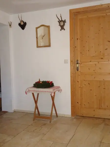 Im Inneren des Hauses gibt es niedrige Decken, Parkett, teilweise alte Dielenböden und Marmorfliesen im Flur und im Badezimmer.