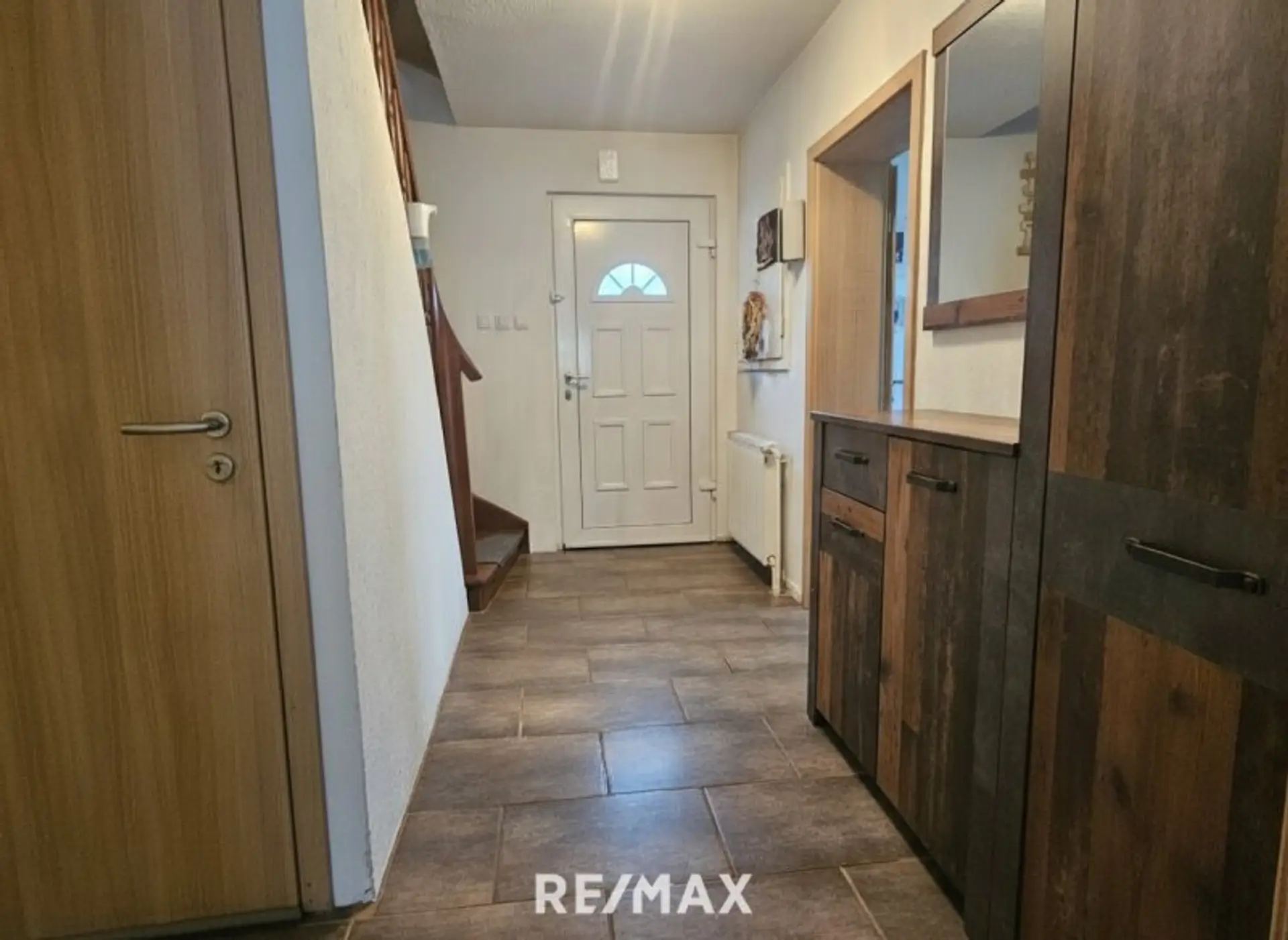 Das Erdgeschoß besteht dem Wohnzimmer, Küche mit Esszimmer, Büro, Vorraum, Badezimmer mit Dusche und WC sowie dem Heiz- bzw Waschraum.