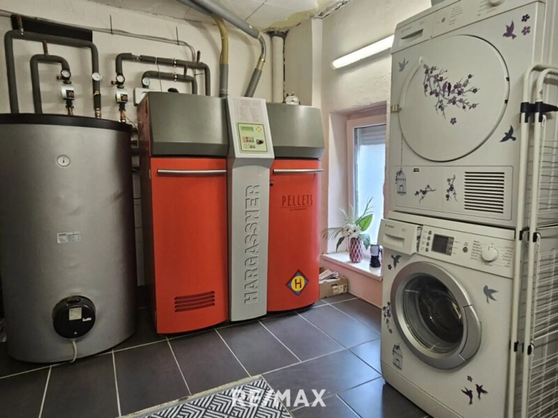 Geheizt wird mit einer modernen Pelletszentralheizung (8 Tonnen Lager) mittels Radiatoren.