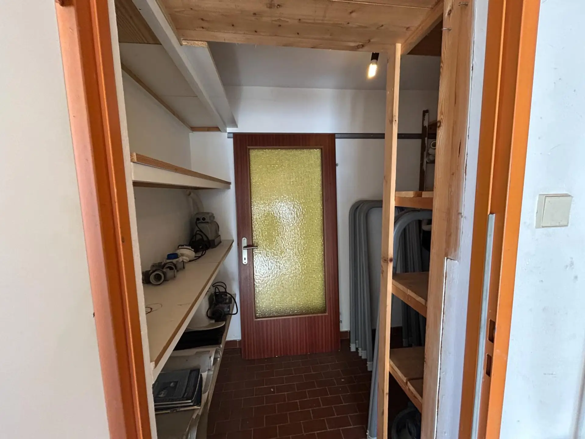 Ein Dachboden mit Schräge bietet zusätzlichen Stauraum. Ein Keller ist nicht vorhanden.