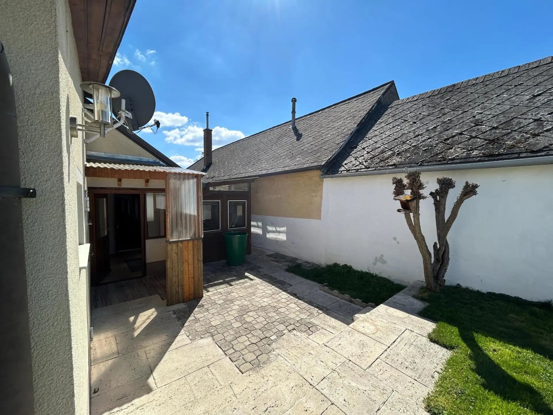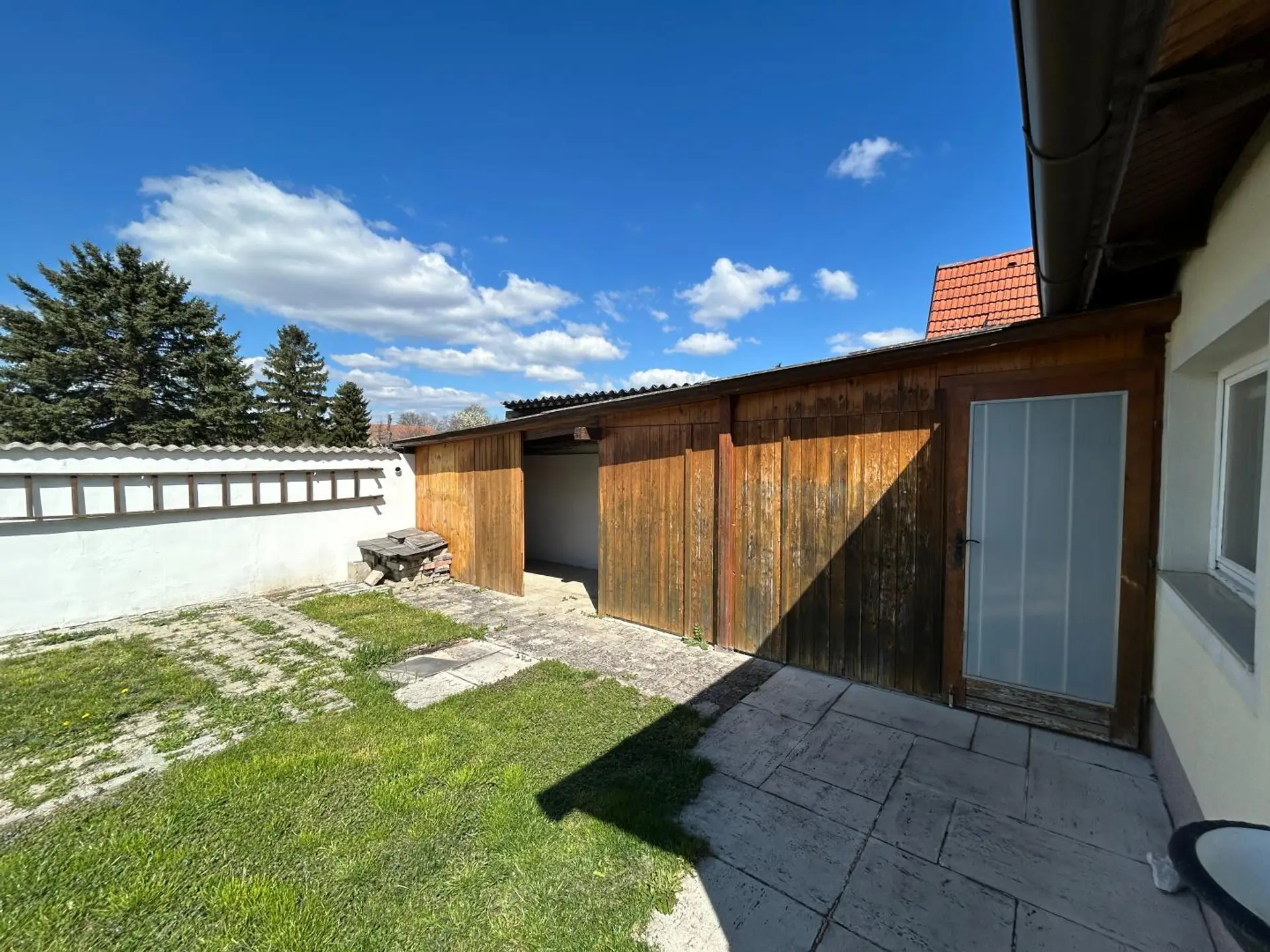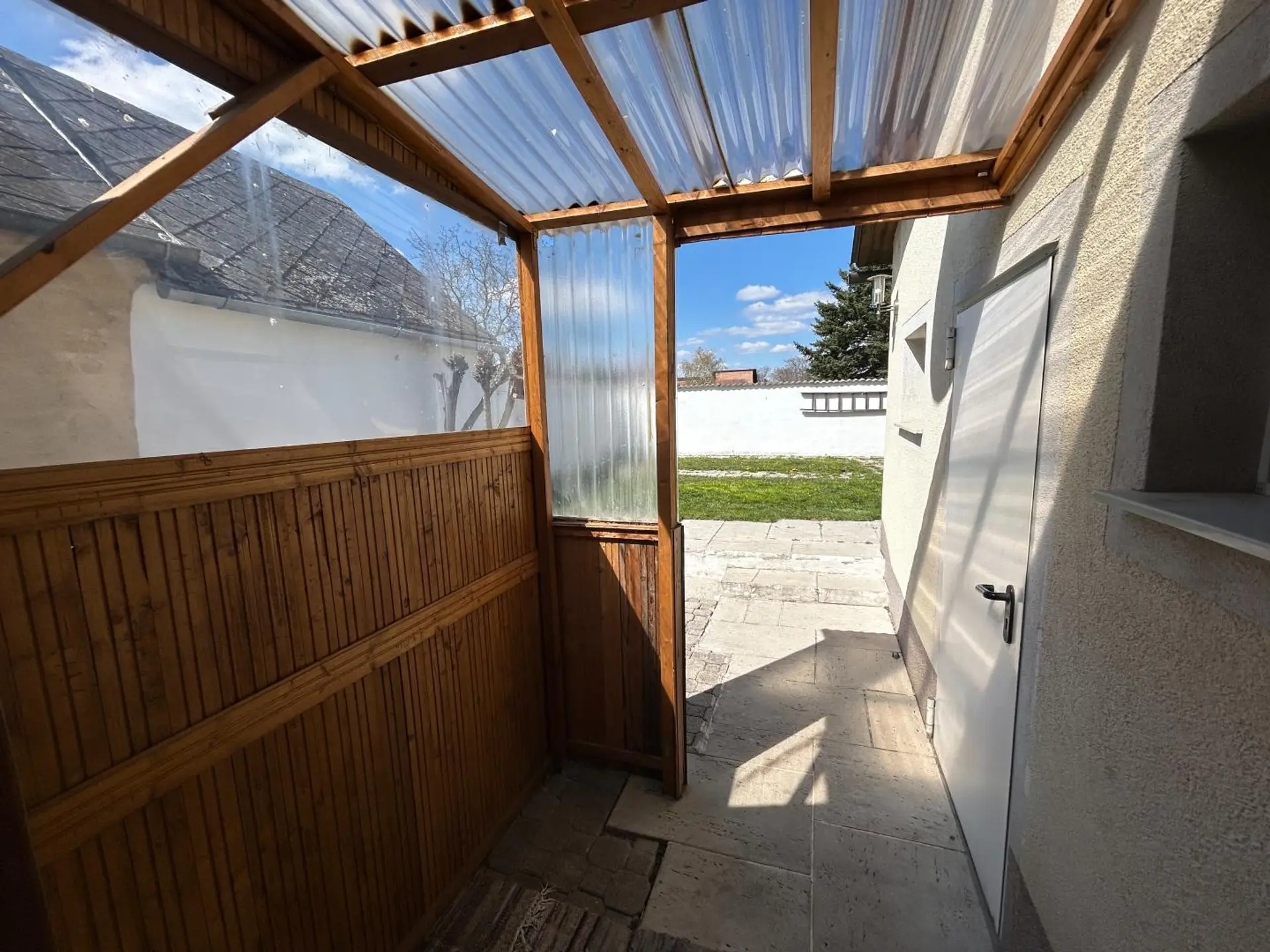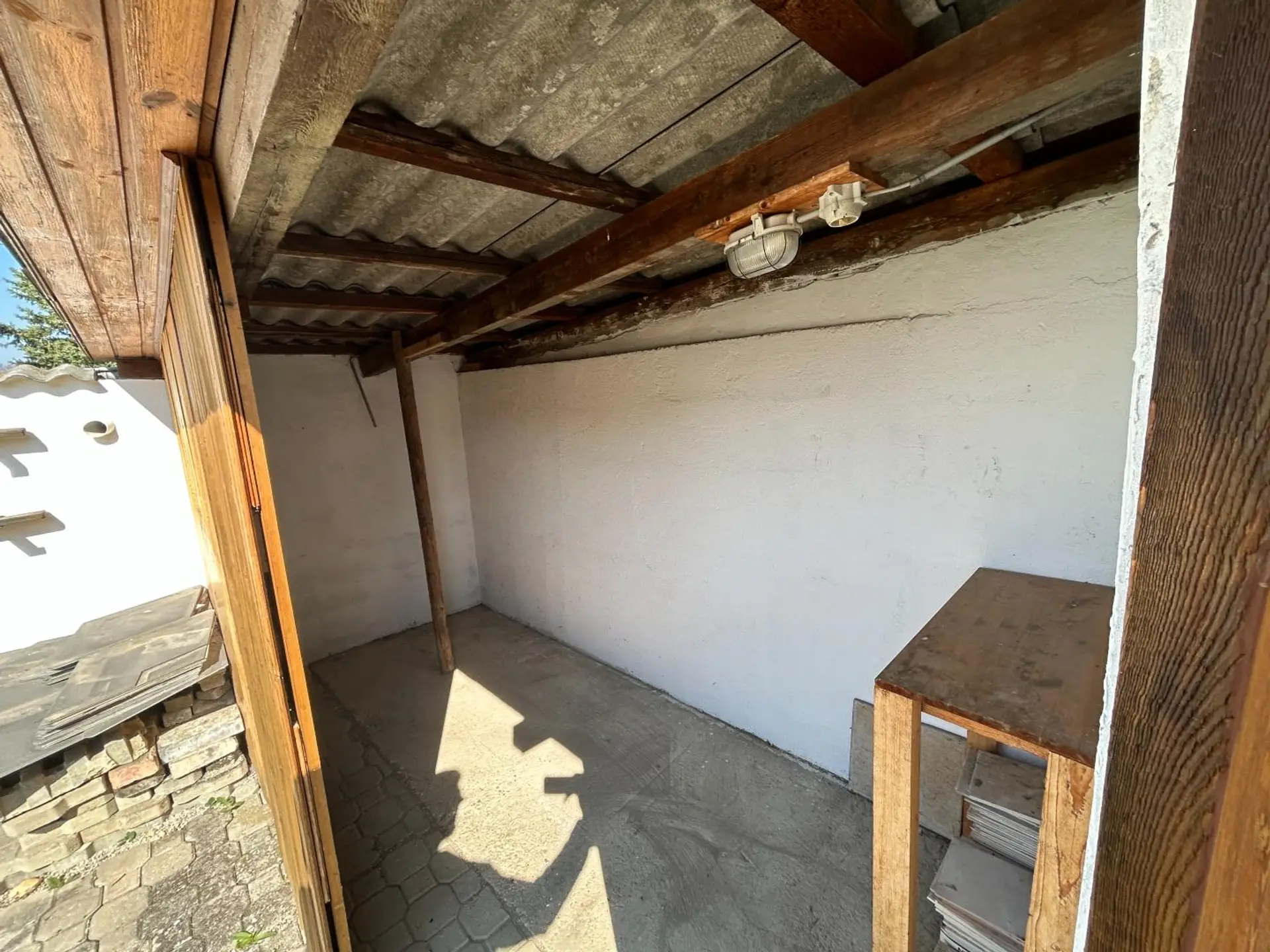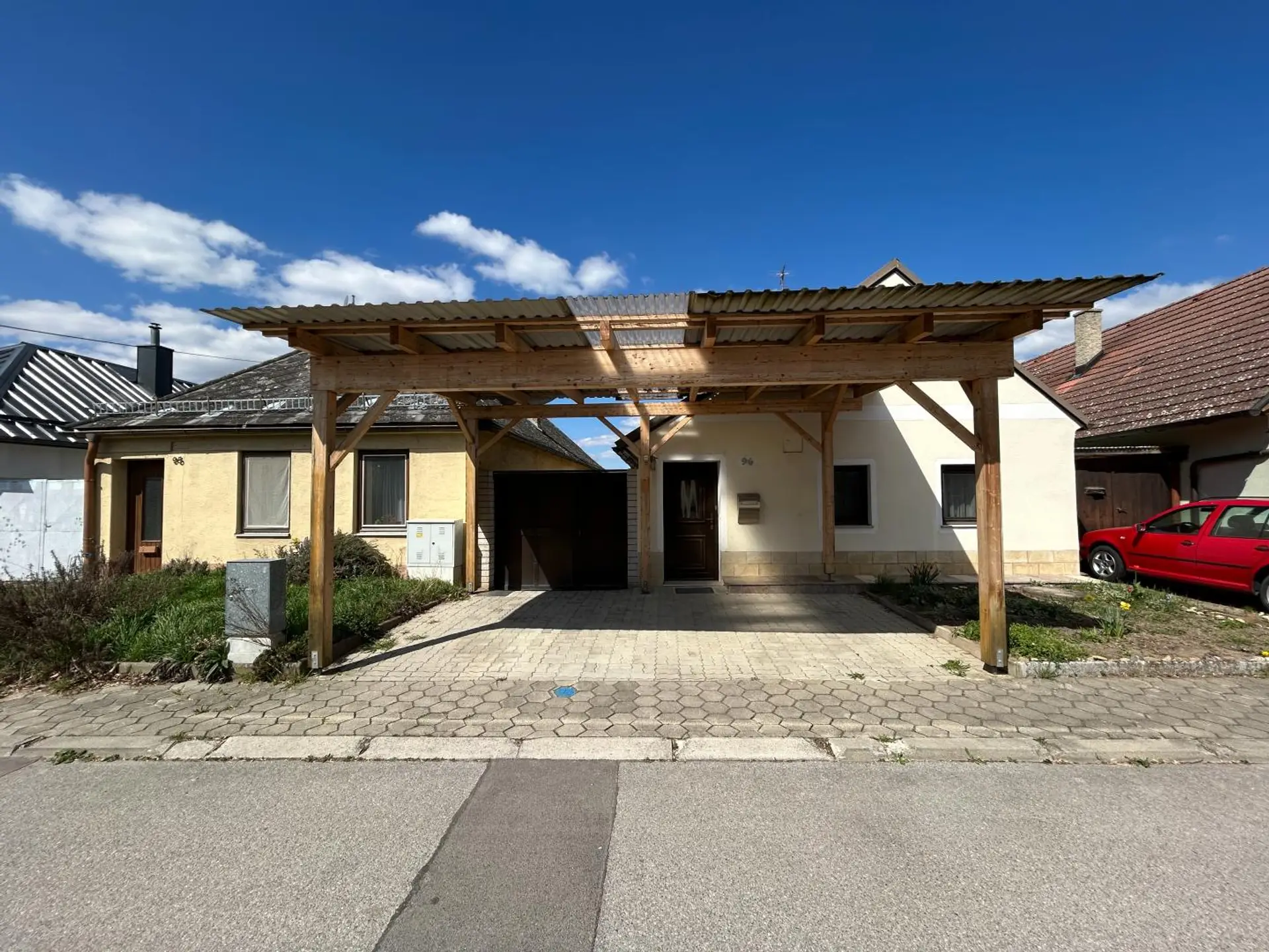 Direkt vor dem Haus befindet sich ein großzügiges Carport. Dieses steht auf Gemeindegrund, ist jedoch genehmigt – eine praktische und rechtlich gesicherte Parklösung.