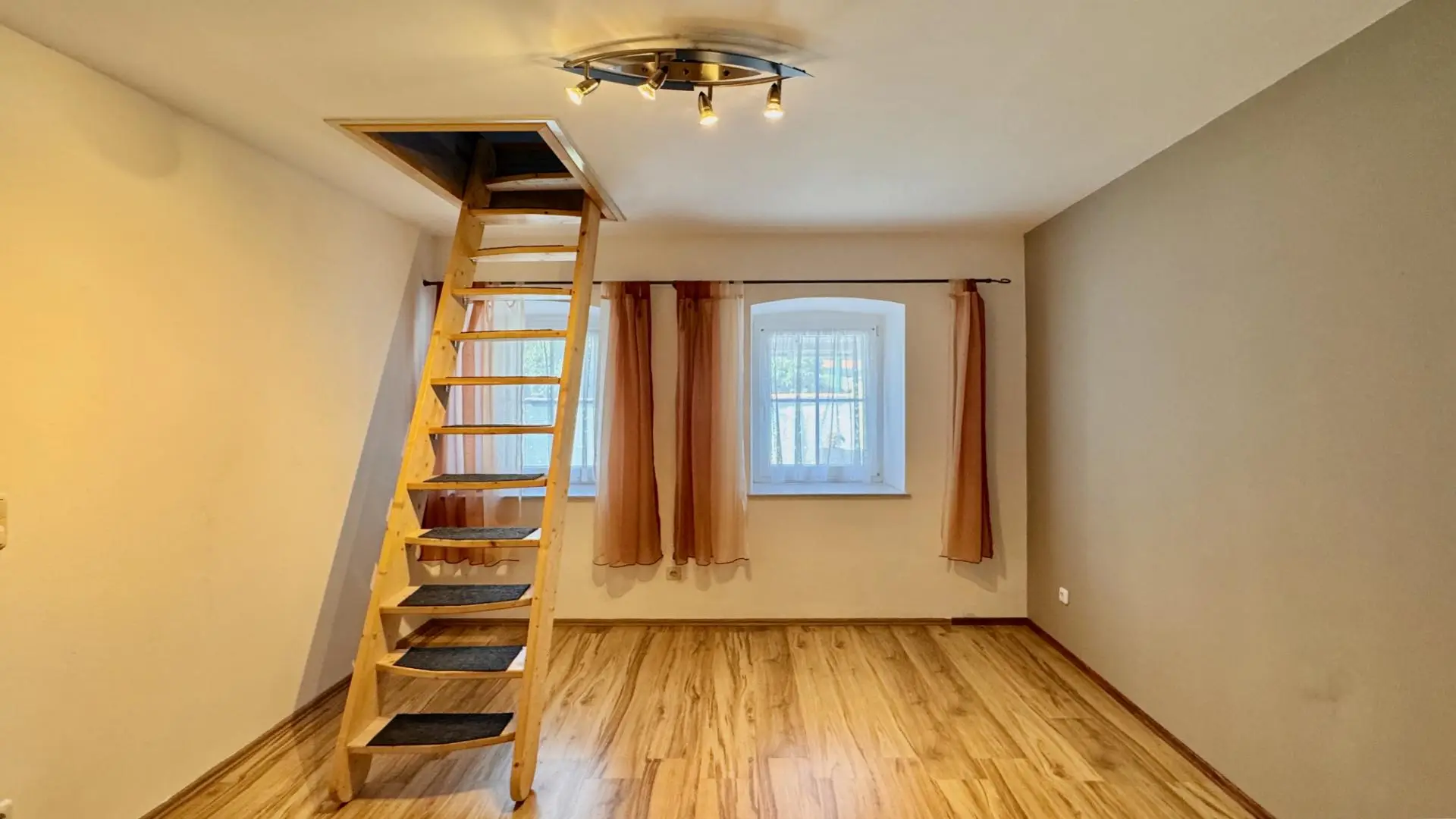 Mit einer Wohnfläche von ca. 75 m² und einem Schlafzimmer im Dachgeschoß eignet sich diese Liegenschaft durchaus für eine kleine Familie.