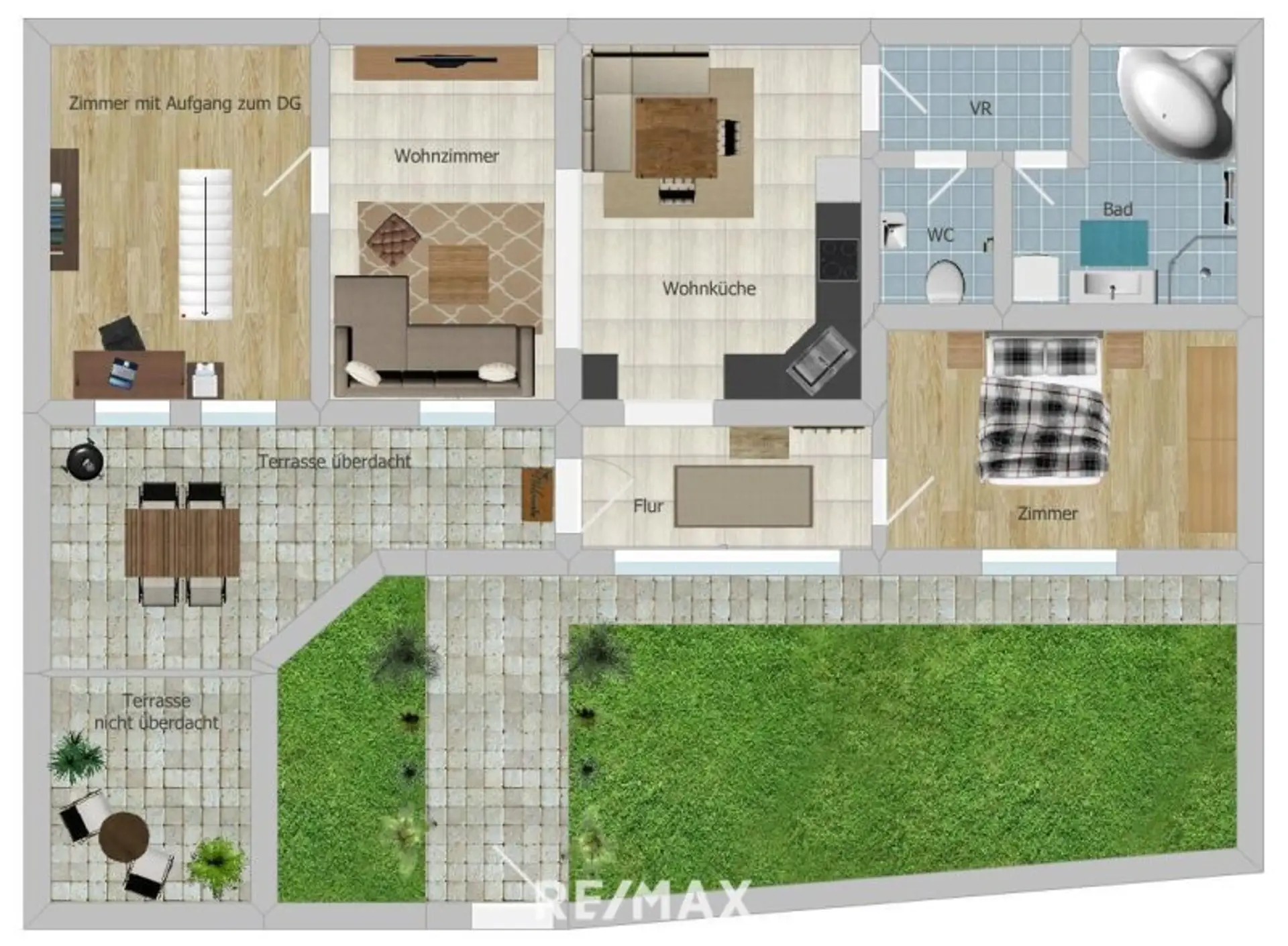 Mit einer Wohnfläche von ca. 75 m² und einem Schlafzimmer im Dachgeschoß eignet sich diese Liegenschaft durchaus für eine kleine Familie.