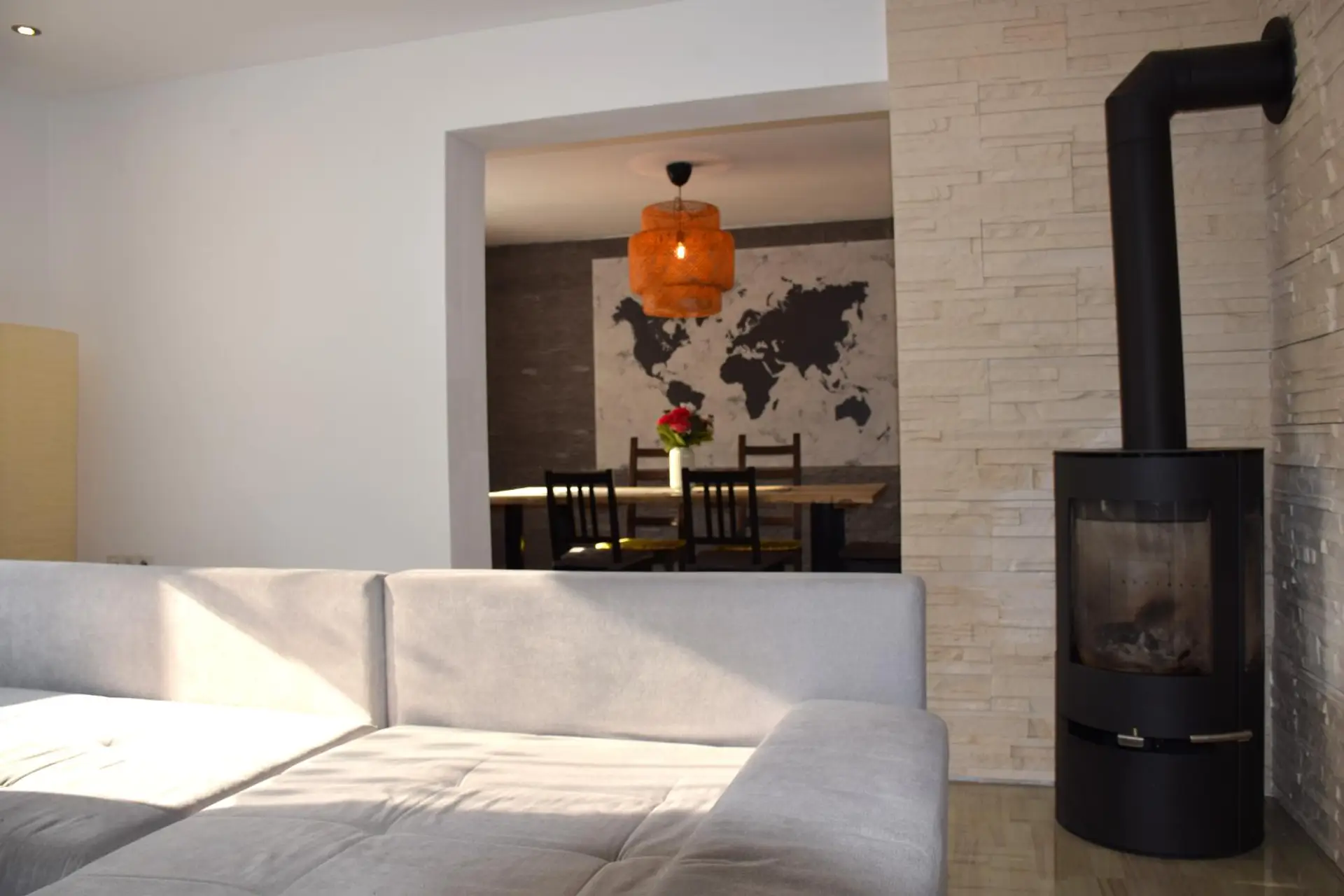 Bei der Heizungsanlage handelt es sich um eine Gas-Brennwerttherme der Marke HEIZBÖSCH, Baujahr ebenfalls 2015. Die Räume werden allesamt mit Heizkörpern erwärmt, WC und Badezimmer im Erdgeschoss besitzen eine Fußbodenheizung. Auf der südwestlich ausgerichteten Dachfläche befindet sich eine Photovoltaikanlage (Balkonkraftwerk) mit einer Leistung von 0,8kWp.