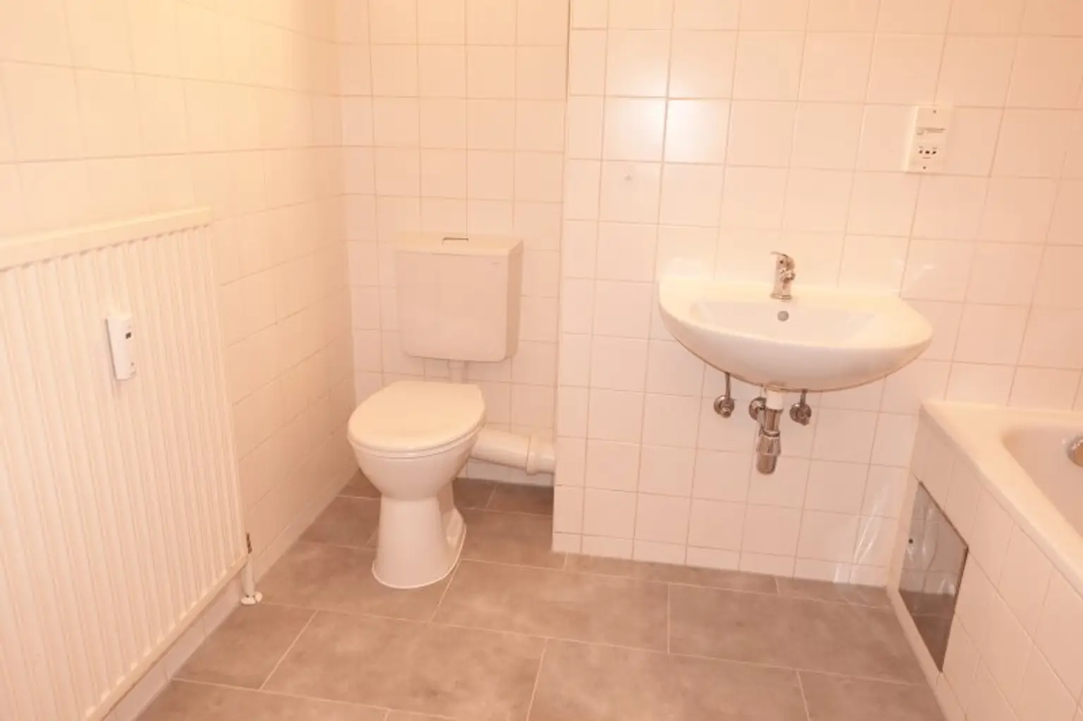 Vorraum; Wohnzimmer; Küche (gerade noch E-Herd und Abwasch); Kabinett/Schlafzimmer; Abstellraum; Badezimmer (Badewanne/Waschbecken/Waschmaschinenanschluss/WC); Kellerabteil