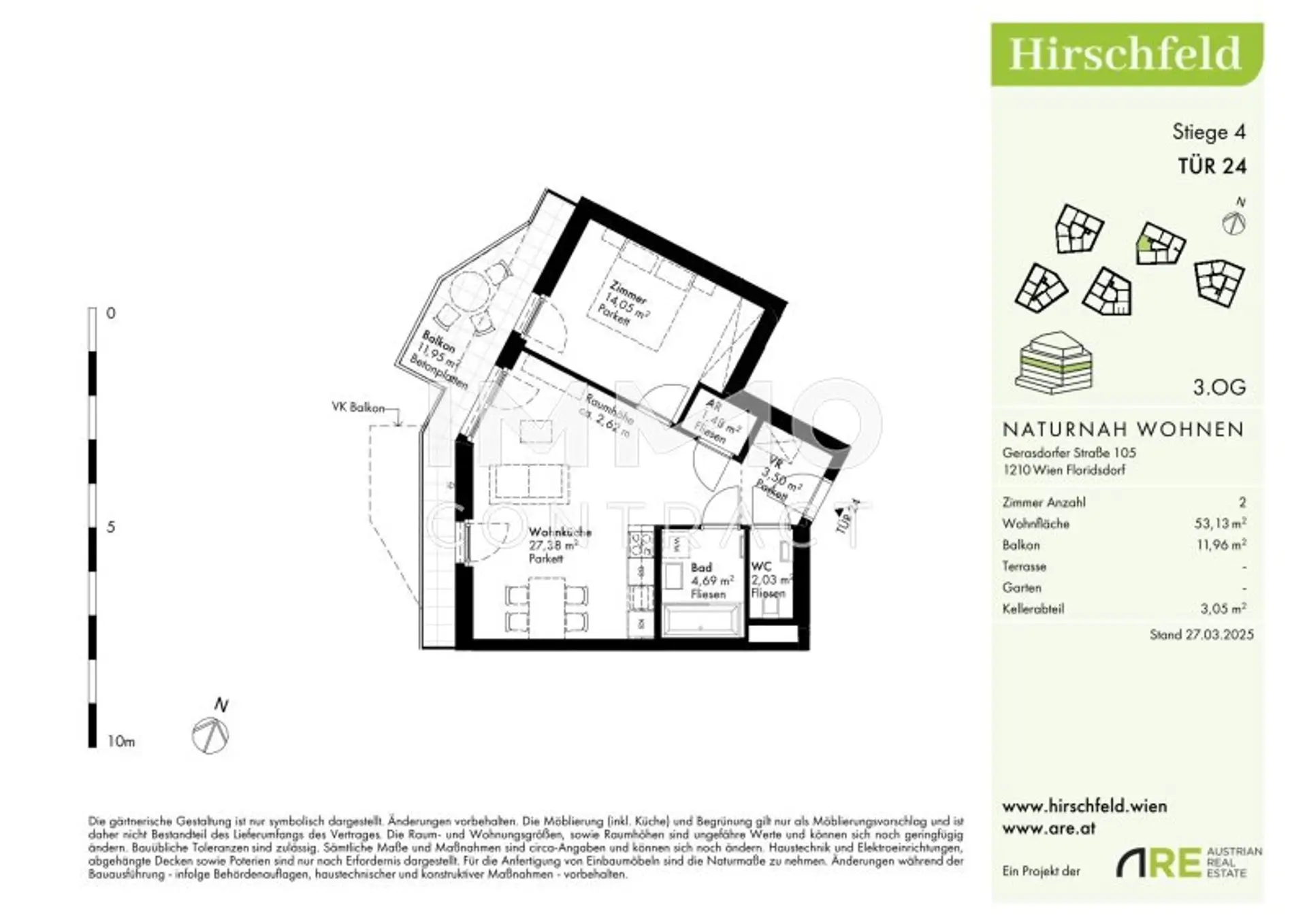 Am Rande eines weitläufigen Grünzugs, der sich bis zum Bisamberg erstreckt, entsteht im naturnahen Hirschfeld ein einzigartiges Wohnquartier: Auf drei Bauplätzen entwickelt sich ein modernes Architektur-Ensemble mit elf Gebäuden und rund 440 Wohnungen – ideal für alle, die Ruhe im Grünen mit urbaner Lebensqualität verbinden möchten.