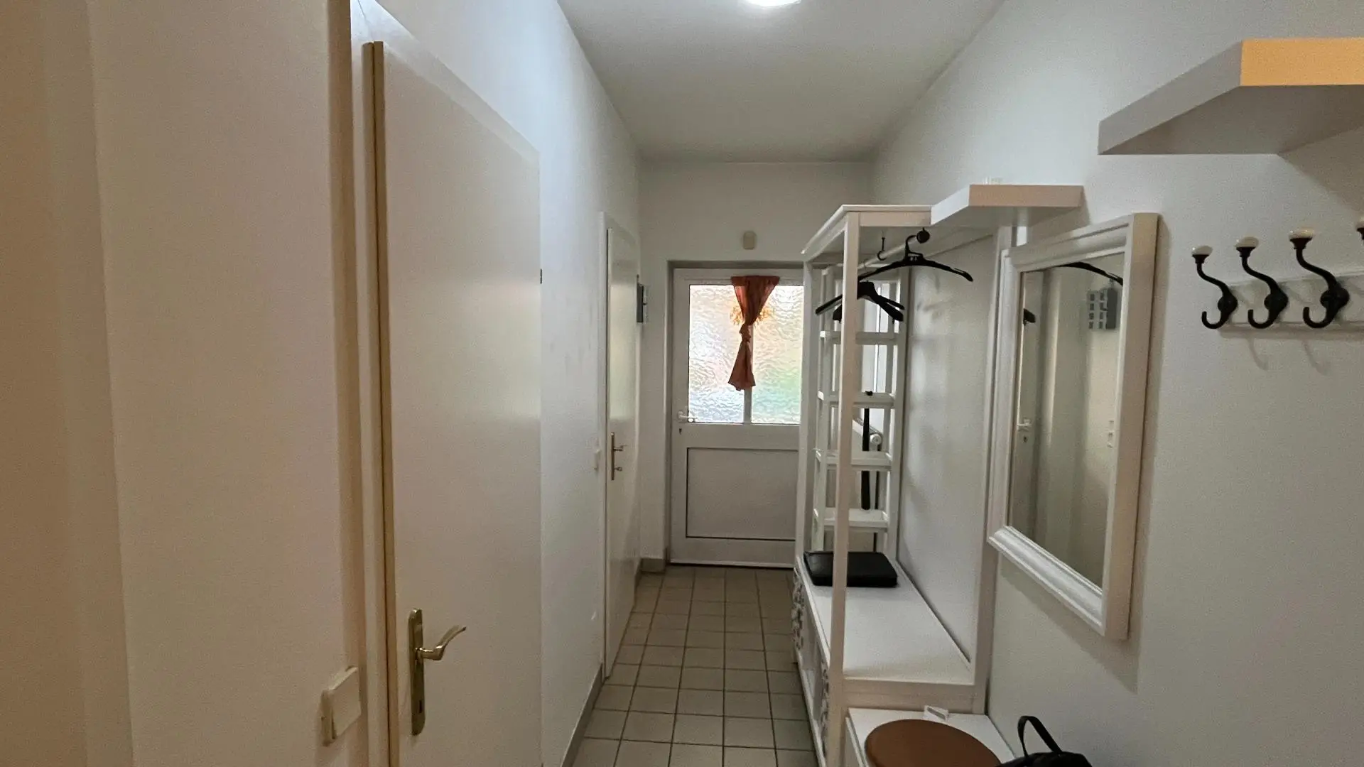 Der Wohnbereich ist hell und freundlich gestaltet und bietet direkten Zugang zur Terrasse mit 10,39 m², die zum Entspannen im Freien einlädt.