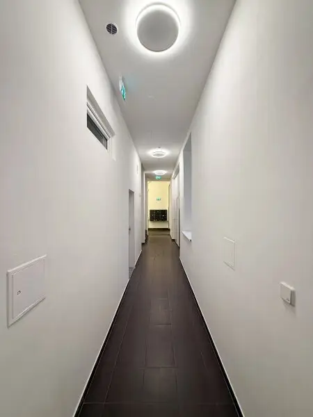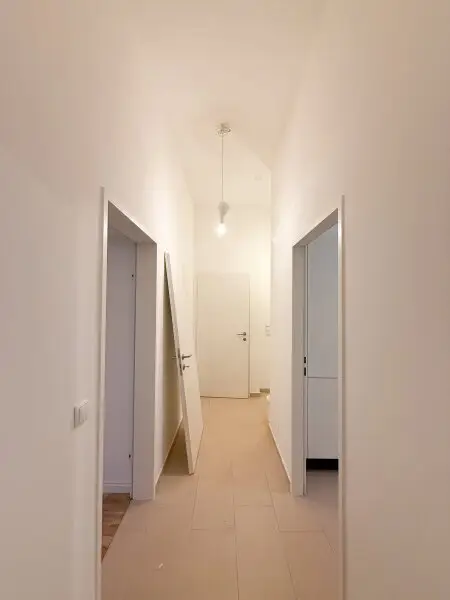 Der geflieste Vorraum bildet die funktionale Mitte der Wohnung und ermöglicht den direkten Zugang zu sämtlichen Räumlichkeiten. Die klare, lineare Führung sorgt für eine übersichtliche und effiziente Erschließung des gesamten Wohnbereichs.