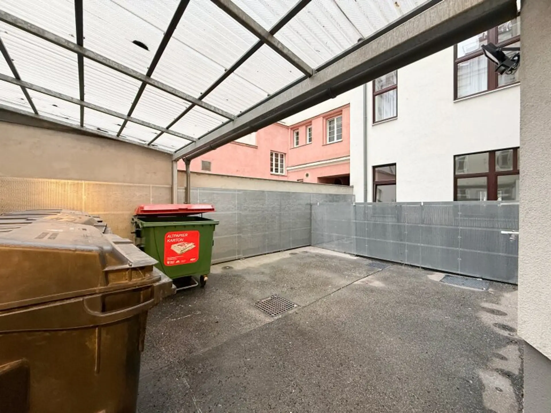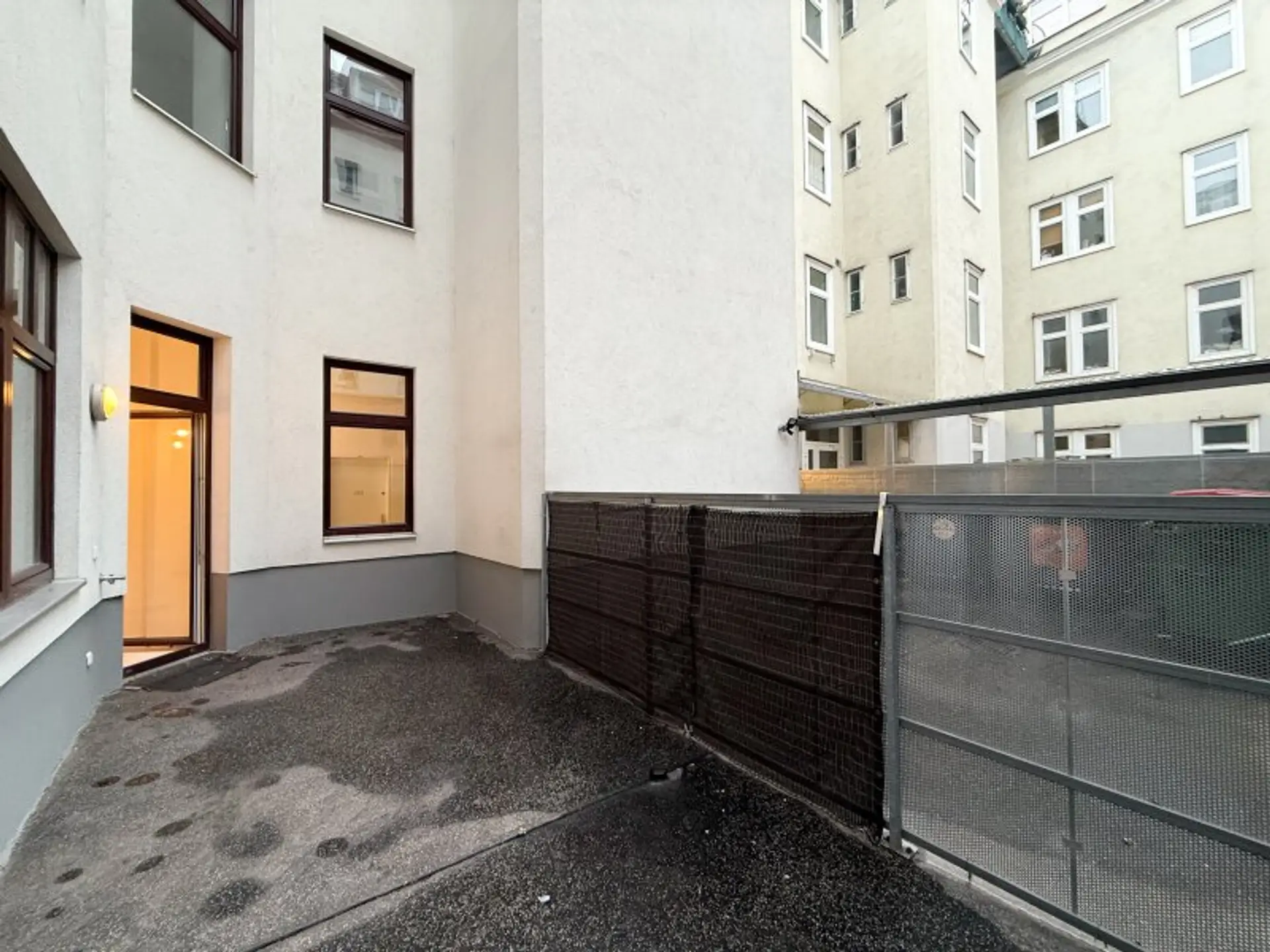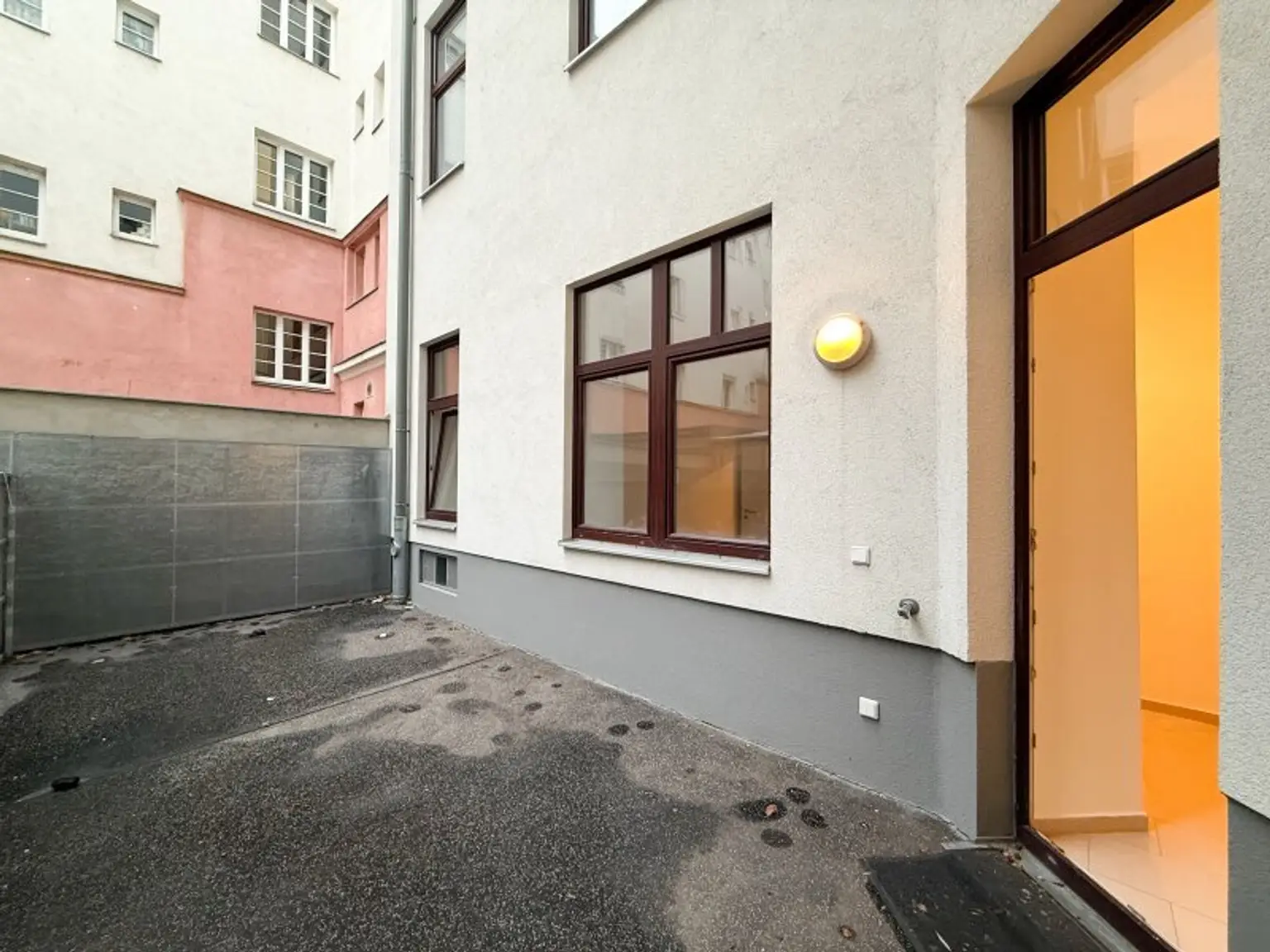 Vom Vorraum aus gelangt man direkt in den der Wohnung exklusiv zugeordneten Innenhoftrakt. Diese hofseitige Freifläche bietet einen geschützten, ruhigen Außenbereich und stellt eine wertvolle Erweiterung des Wohnraums dar.