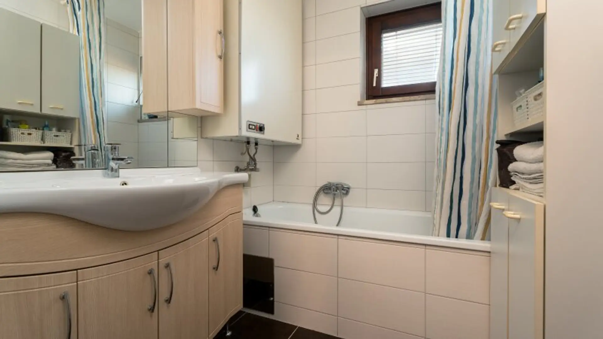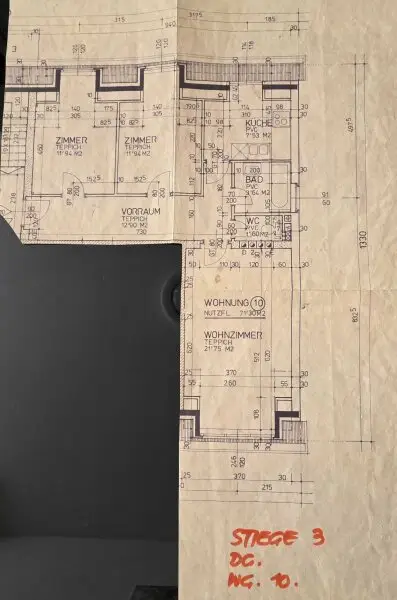 bestehend aus Vorraum, WC, Küche mit Waschmaschinenanschluss, Bad mit Wanne, Wohnzimmer, Schlafzimmer mit Kinderzimmer.