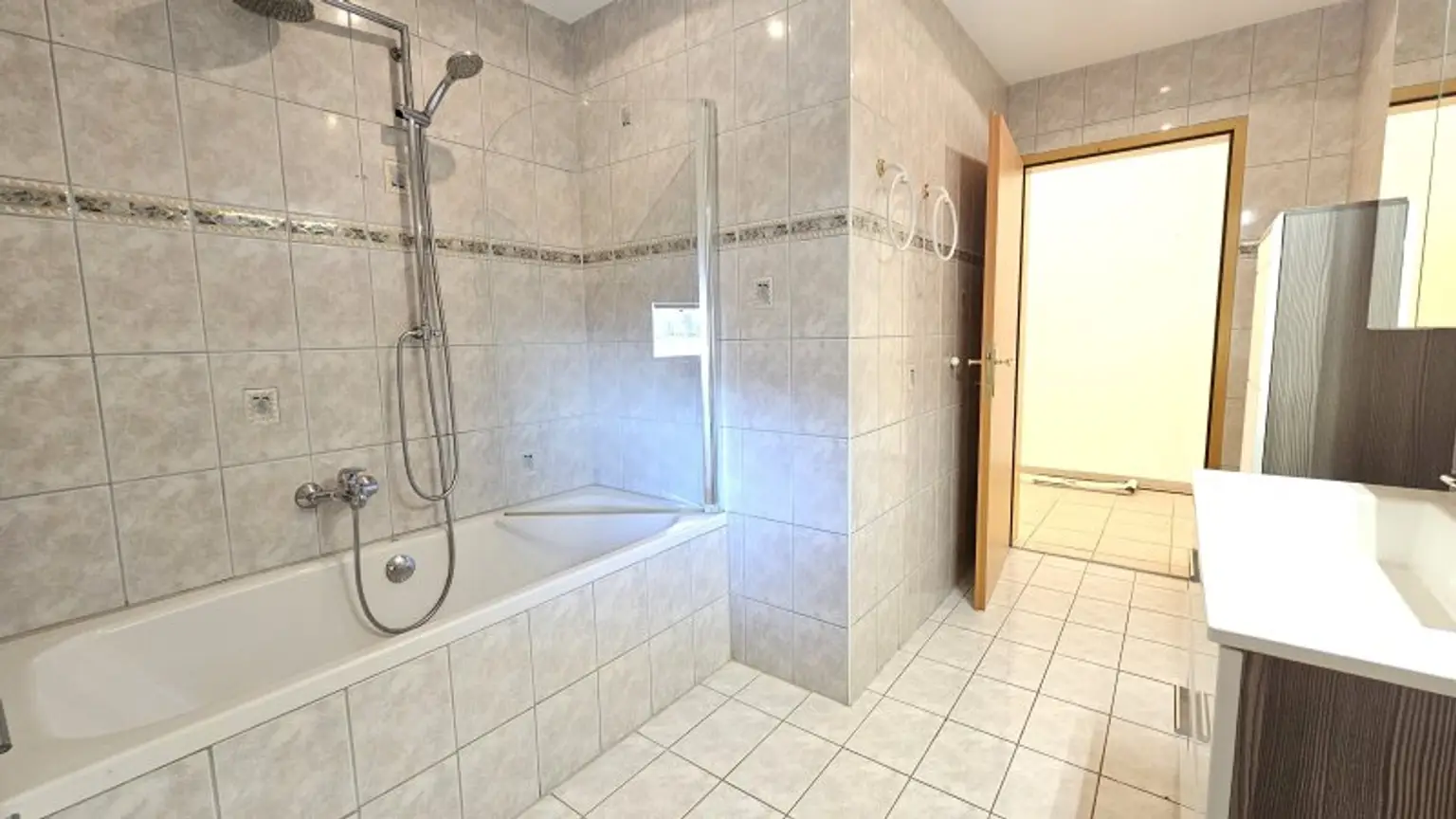 Sie verfügt über 3 Zimmer, 1 Küche, 1 Badezimmer inkl. Badewanne, 1 WC, 1 Abstellraum, 1 Loggia Süd-West und 1 Nord-Ost, 1 Kellerabteil und 1 Stellplatz. Ein zweiter Autoabstellplatz optional.
