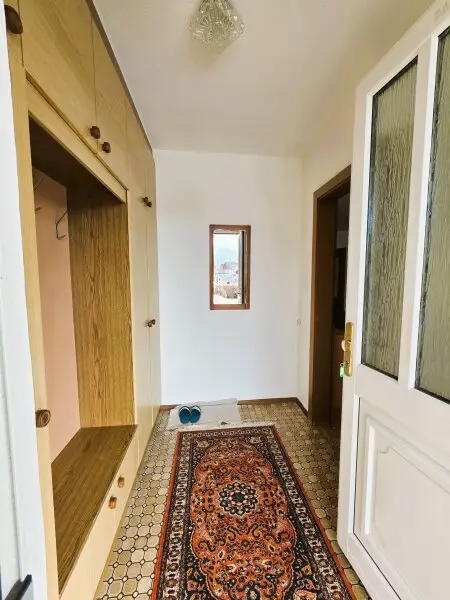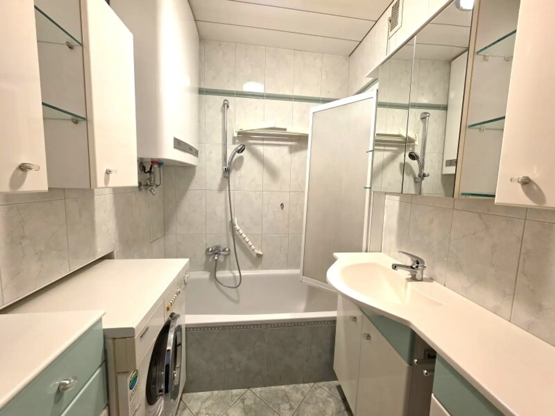Die beiden Schlafzimmer sind nach Osten ausgerichtet und profitieren von angenehmem Morgenlicht. Wohnzimmer und Loggia sind westlich orientiert und bieten viel Nachmittag- und Abendsonne, die zu entspannten Stunden einlädt. Das Badezimmer ist mit einer Badewanne ausgestattet, die Toilette ist separat angeordnet.