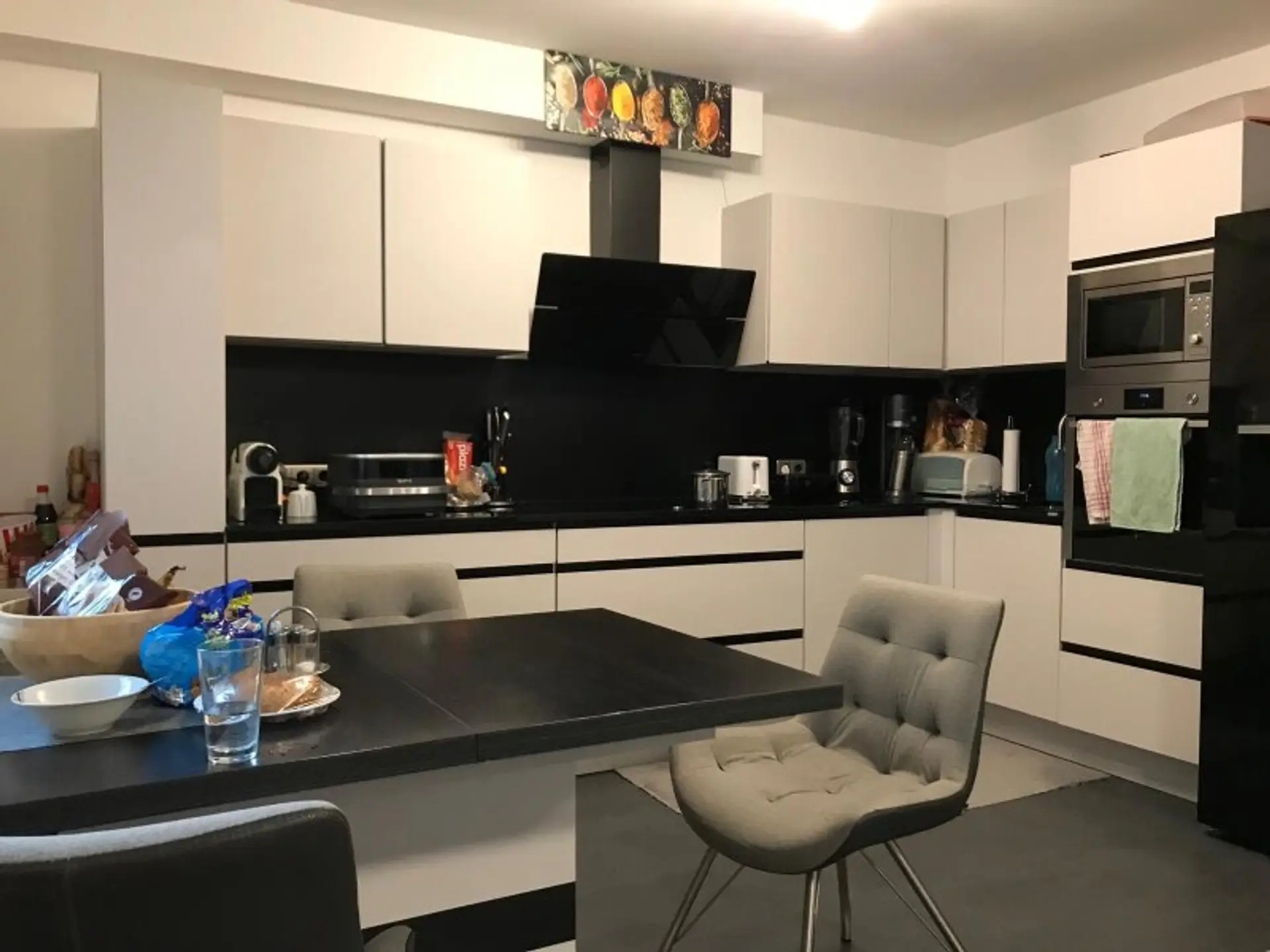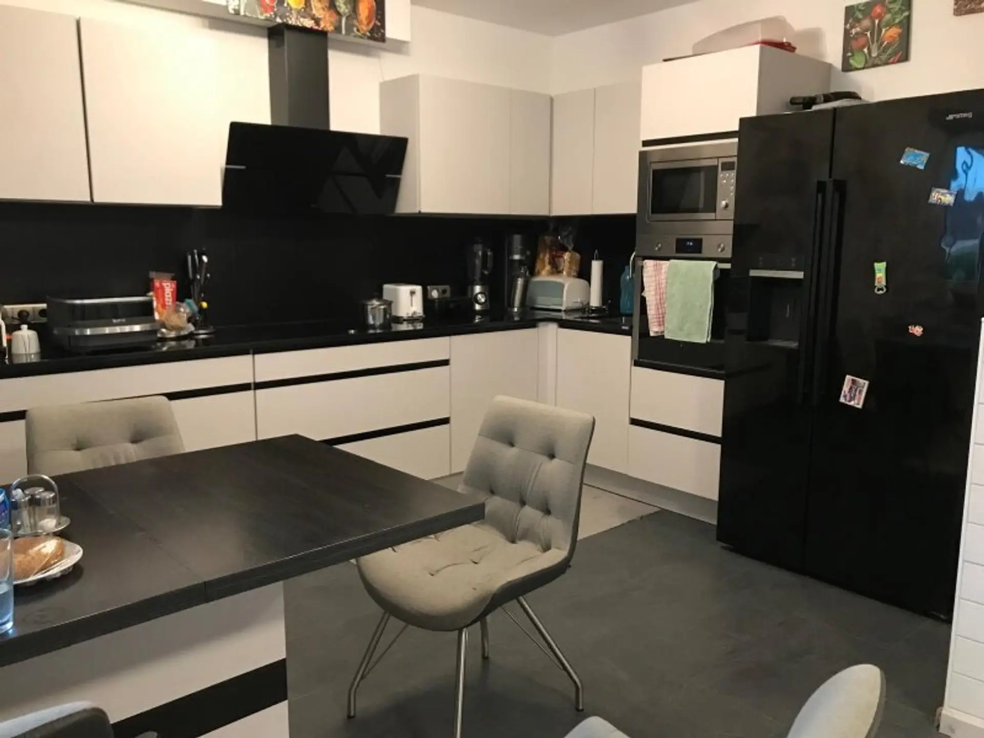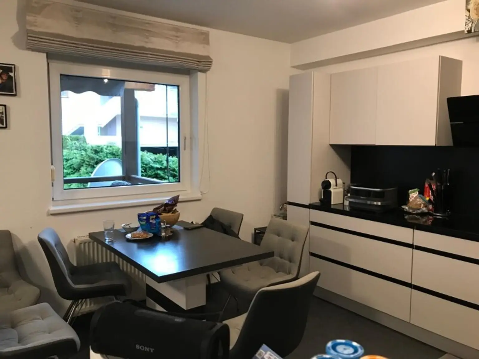 Das Herzstück der Wohnung bildet der offen gestaltete Wohn- und Essbereich. Die moderne Küche, die im Jahr 2018 erneuert wurde, fügt sich stilvoll in den Raum ein und ist mit hochwertigen Geräten ausgestattet. Die Kombination aus zeitlosem Design und funktionaler Ausstattung macht diesen Bereich zum zentralen Treffpunkt des Alltags.