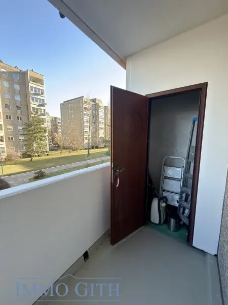 Über einen großzügigen Vorraum sind die beiden Zimmer sowie Bad und WC zentral begehbar. Das helle Wohnzimmer bietet ausreichend Platz für einen Wohn- und Essbereich und verfügt über einen direkten Zugang zur Loggia, die den Wohnraum angenehm erweitert. Auf der Loggia befindet sich zusätzlich ein praktischer Abstellraum.