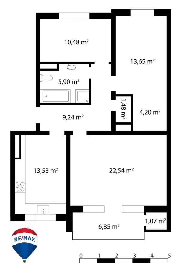 Die Wohnung bietet eine Wohnfläche von ca. 85 Quadratmeter und gliedert sich wie folgt: