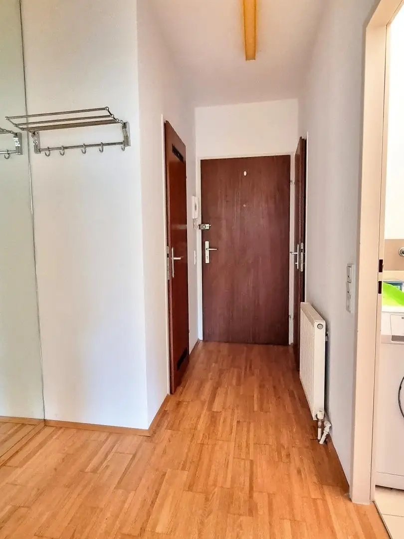 RAUMAUFTEILUNG (ca. 41m²): Wohn-Schlafzimmer, Einbauküche mit Geräten, Bad mit Wanne und Waschmaschinenanschluss, WC, Vorraum, Abstellraum.