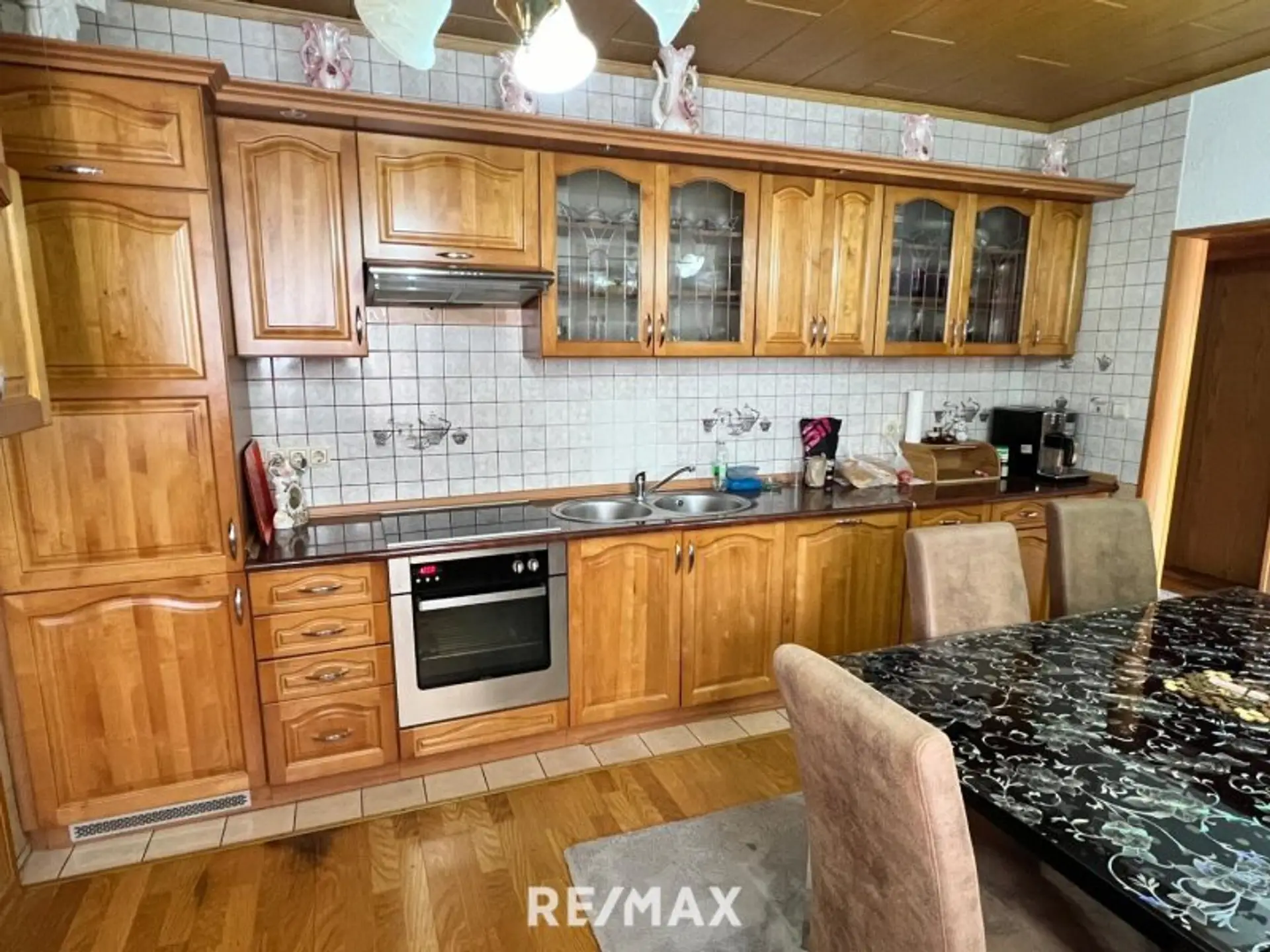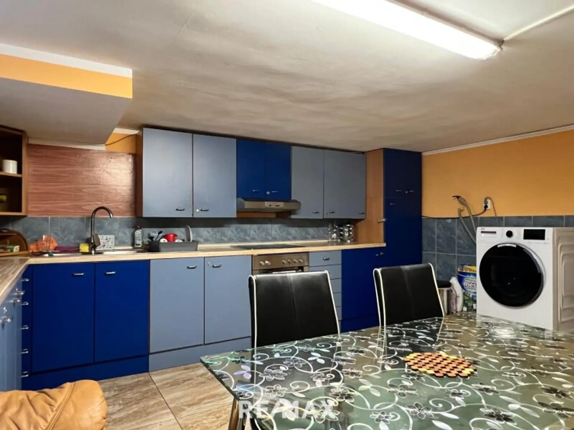 Im 67 m² großen Keller befindet sich ein großer Vorraum, ein weiteres (Schlaf-)Zimmer und eine voll-ausgestattete Küche.