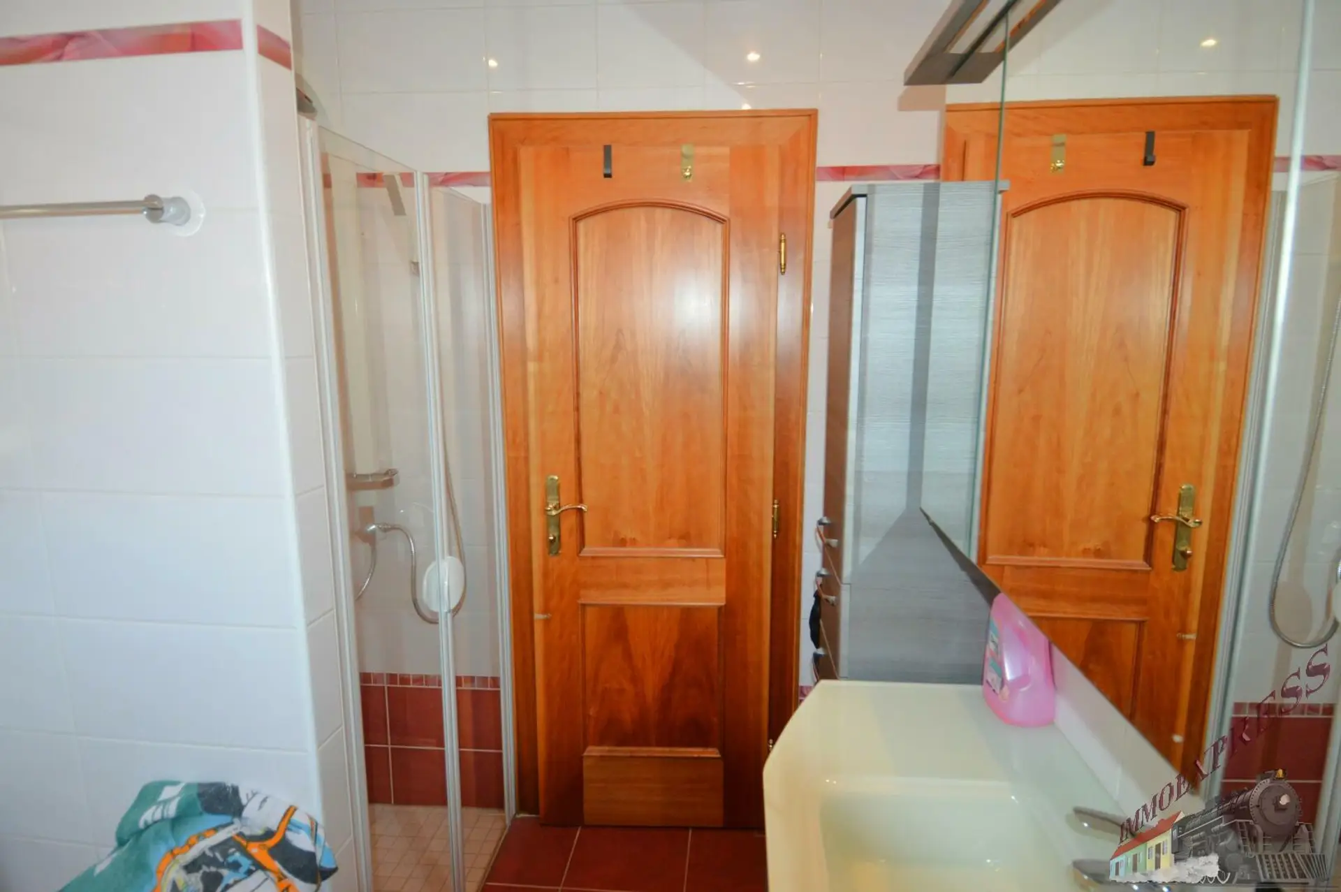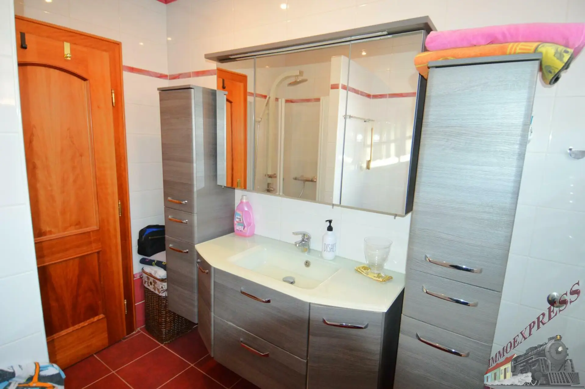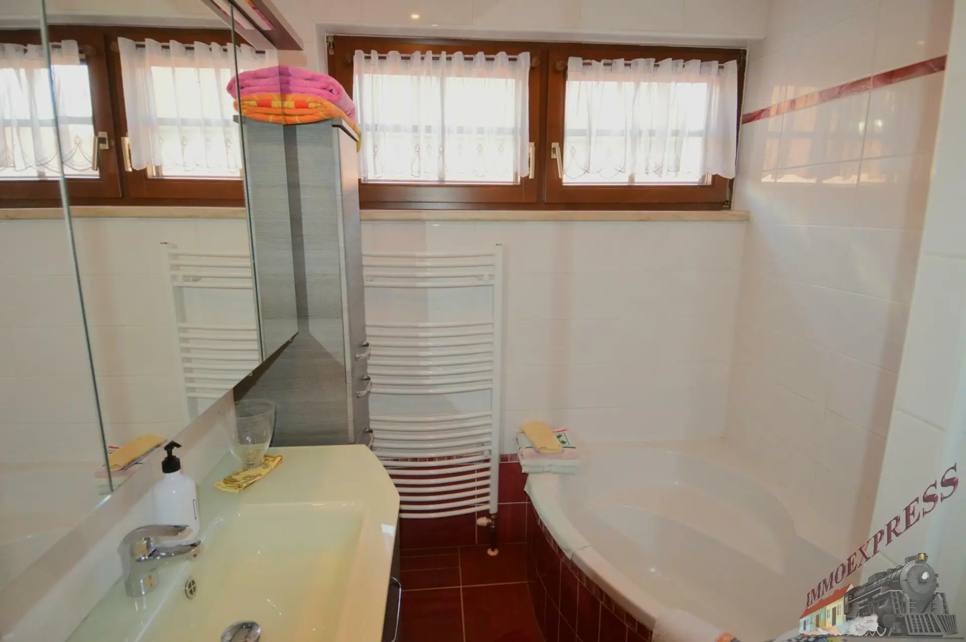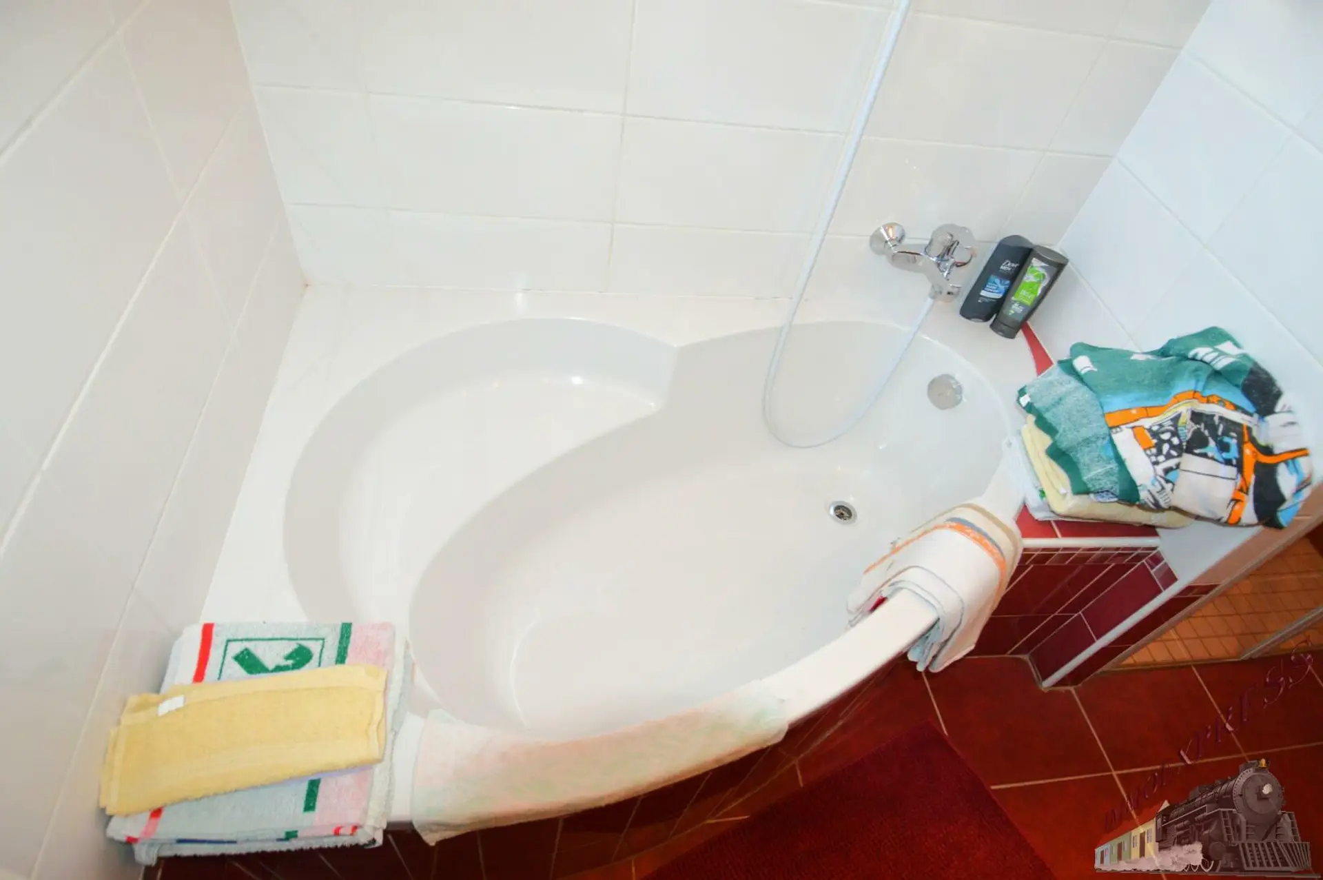- Badezimmer mit Dusche und Eckbadewanne
