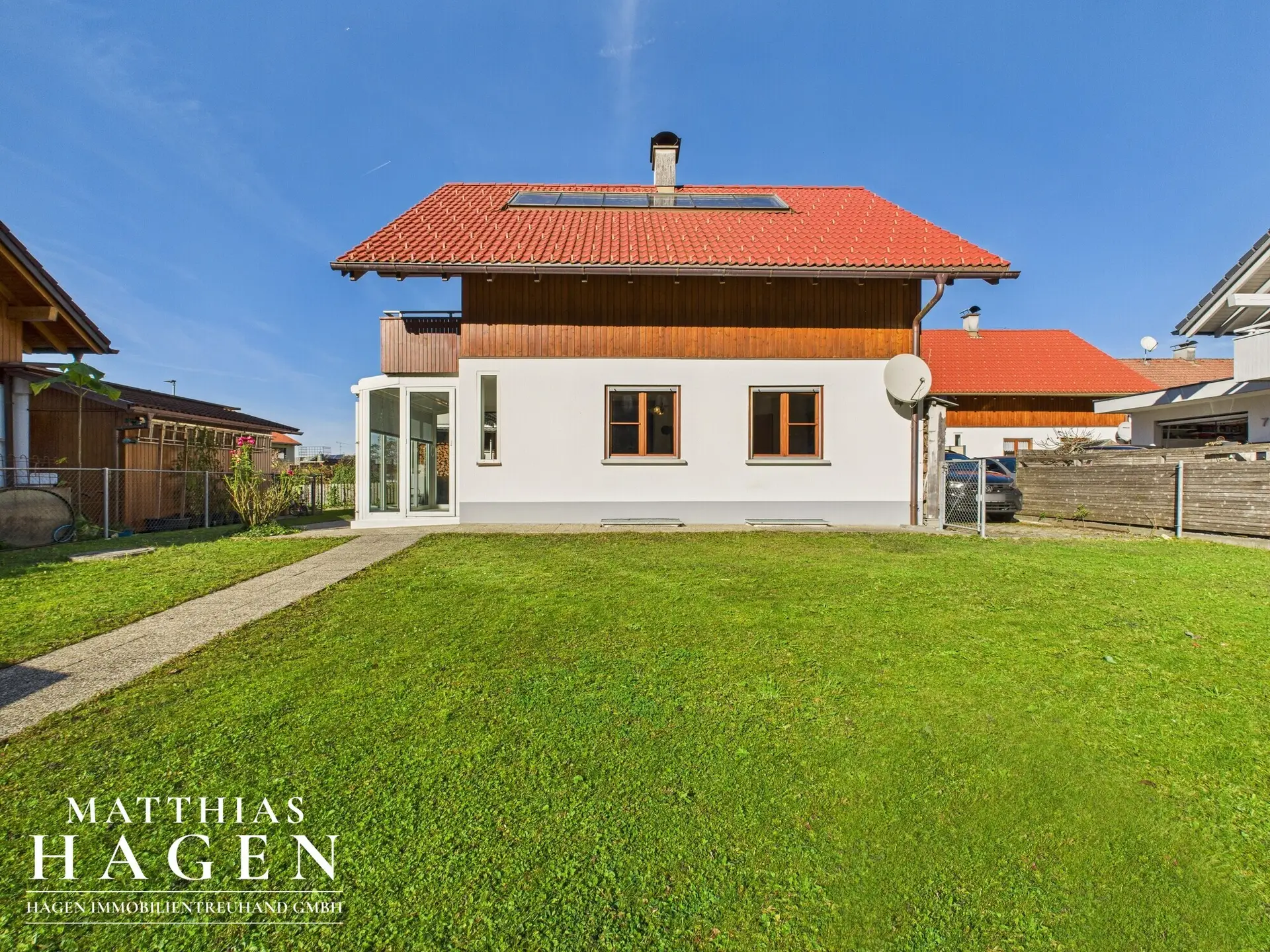 Das Haus verfügt über drei Schlafzimmer sowie zwei Badezimmer – eines mit Dusche und eines mit Badewanne – und bietet damit optimalen Komfort für Familien. Der Garten sorgt für erholsame Stunden im Freien und rundet das Wohngefühl perfekt ab.