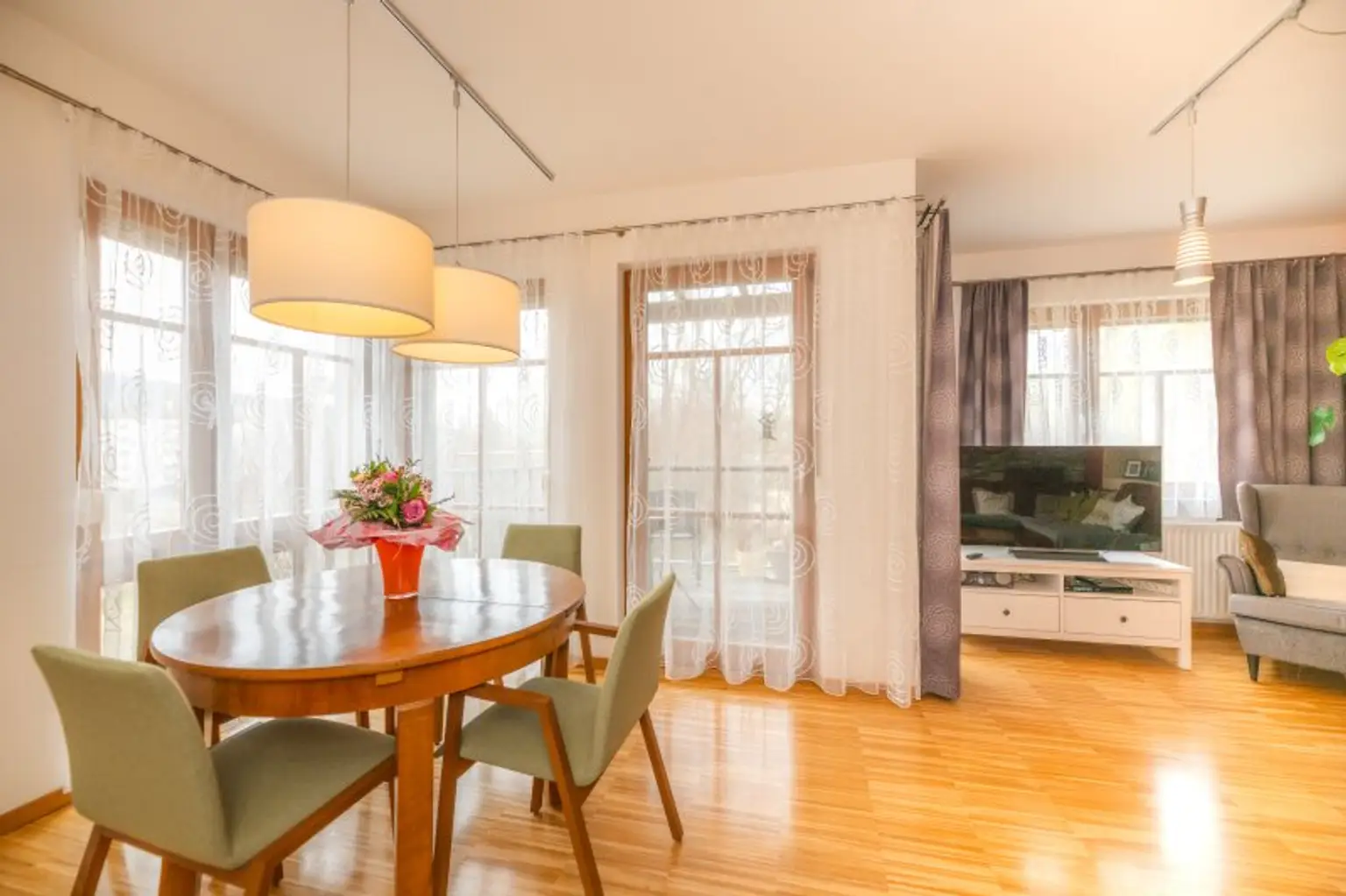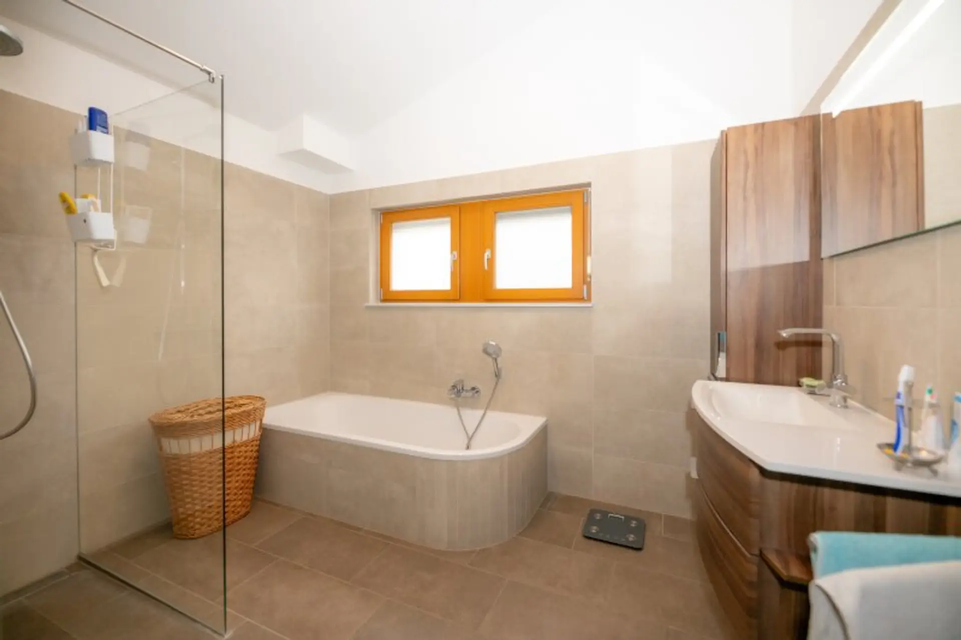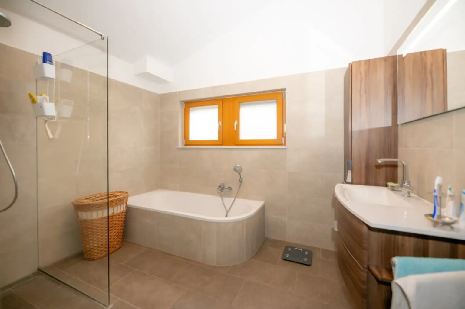 Die Innenräume wurden teilweise 2020 noch moderner ausgestattet und mit neuen Bodenbelägen versehen. Auch die Badezimmer wurden kürzlich erst renoviert (2021) und entsprechen modernen Anforderungen. Die Küche ist mit Miele-Geräten ausgestattet und wurde zum Wohnzimmer geöffnet. Eine Fußbodenheizung in den Nassräumen ergänzt die Radiatoren in den Wohnräumen. Eine Photovoltaikanlage am Dach (6,7kW) wurde 2023 installiert erzeugt in den Sommermonaten Strom im Überfluss und schützt Sie auch im Winter vor hohen Stromkosten. Eine Batterie mit 13 kW speichert die Energie, sodass Sie den Verbrauch tagsüber nach Ihren Bedürfnissen verteilen können.