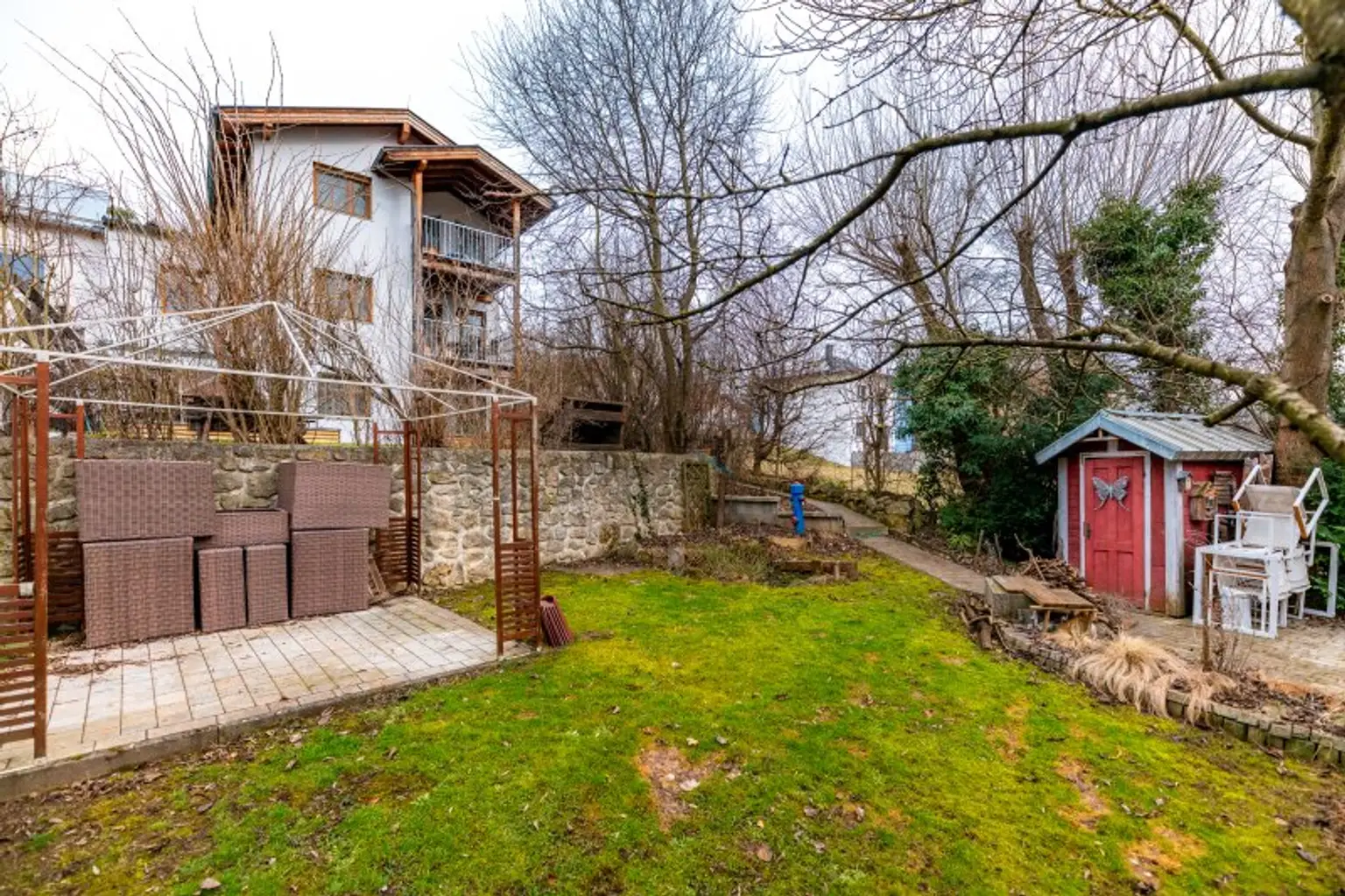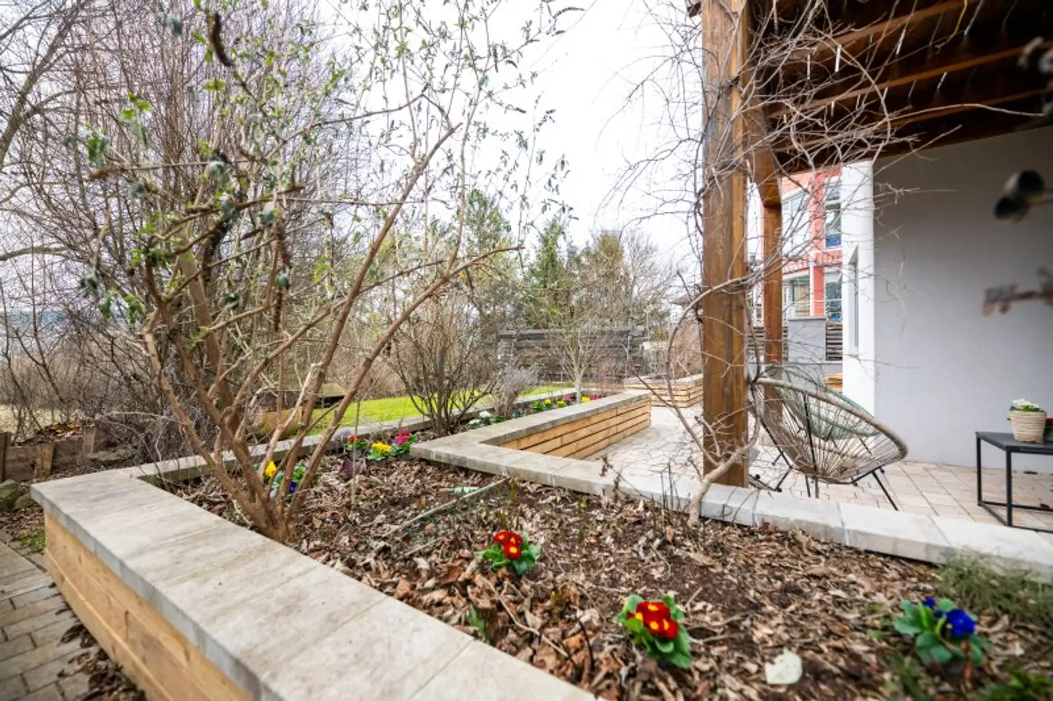 Der liebevoll gestaltete Garten lädt zum Verweilen und Entspannen auf mehreren Sitzplätzen ein. Genießen Sie sonnige Tage auf der Terrasse oder auf einem der zwei Balkone und lassen Sie den Blick ins Grüne auf sich wirken oder ziehen Sie Ihr eigenes Gemüse in einem der liebevoll in Terrassen angelegten Hochbeete, ein perfekter Ausgleich zum hektischen Alltag.