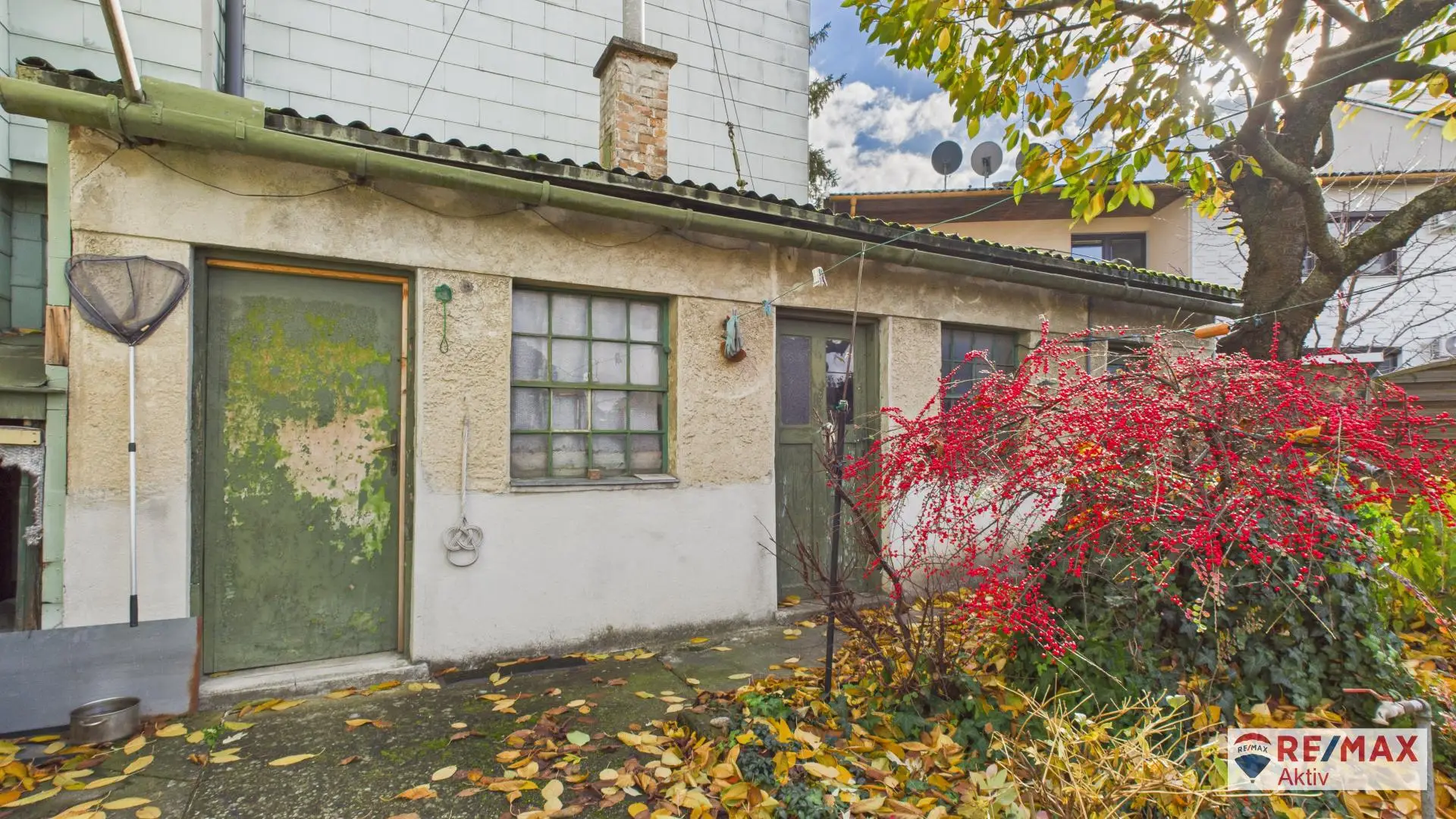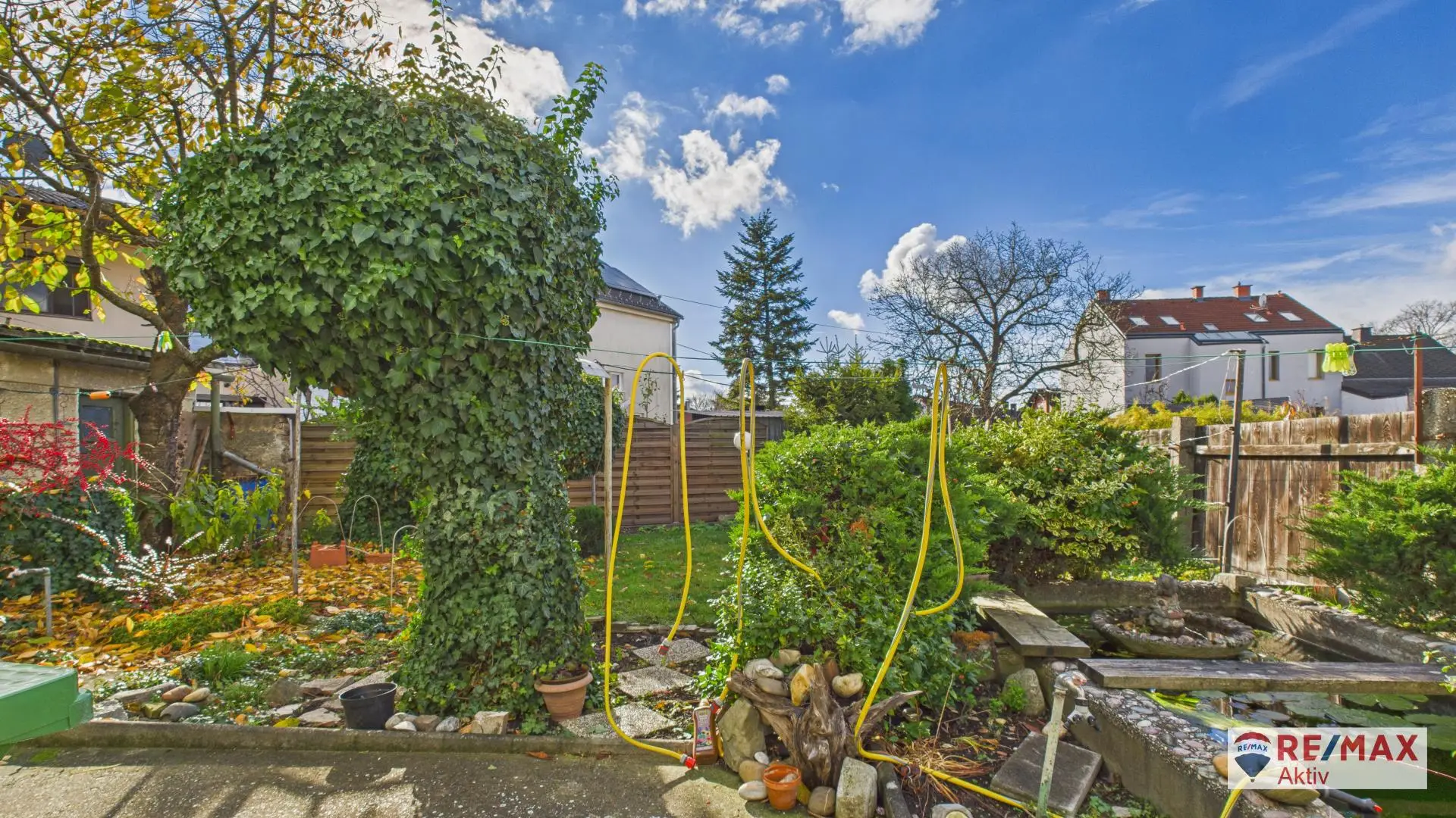 Im Garten befinden sich mehrere Nebengebäude, die vielfältige Nutzungsmöglichkeiten bieten (Werkstatt, Hobbyraum, Lagerfläche). Ein kleiner Fischteich sorgt für ein idyllisches Ambiente und lädt zum Verweilen ein. Eine Garage mit Platz für ein Fahrzeug ist ebenfalls vorhanden und rundet das Gesamtangebot praktisch ab.
