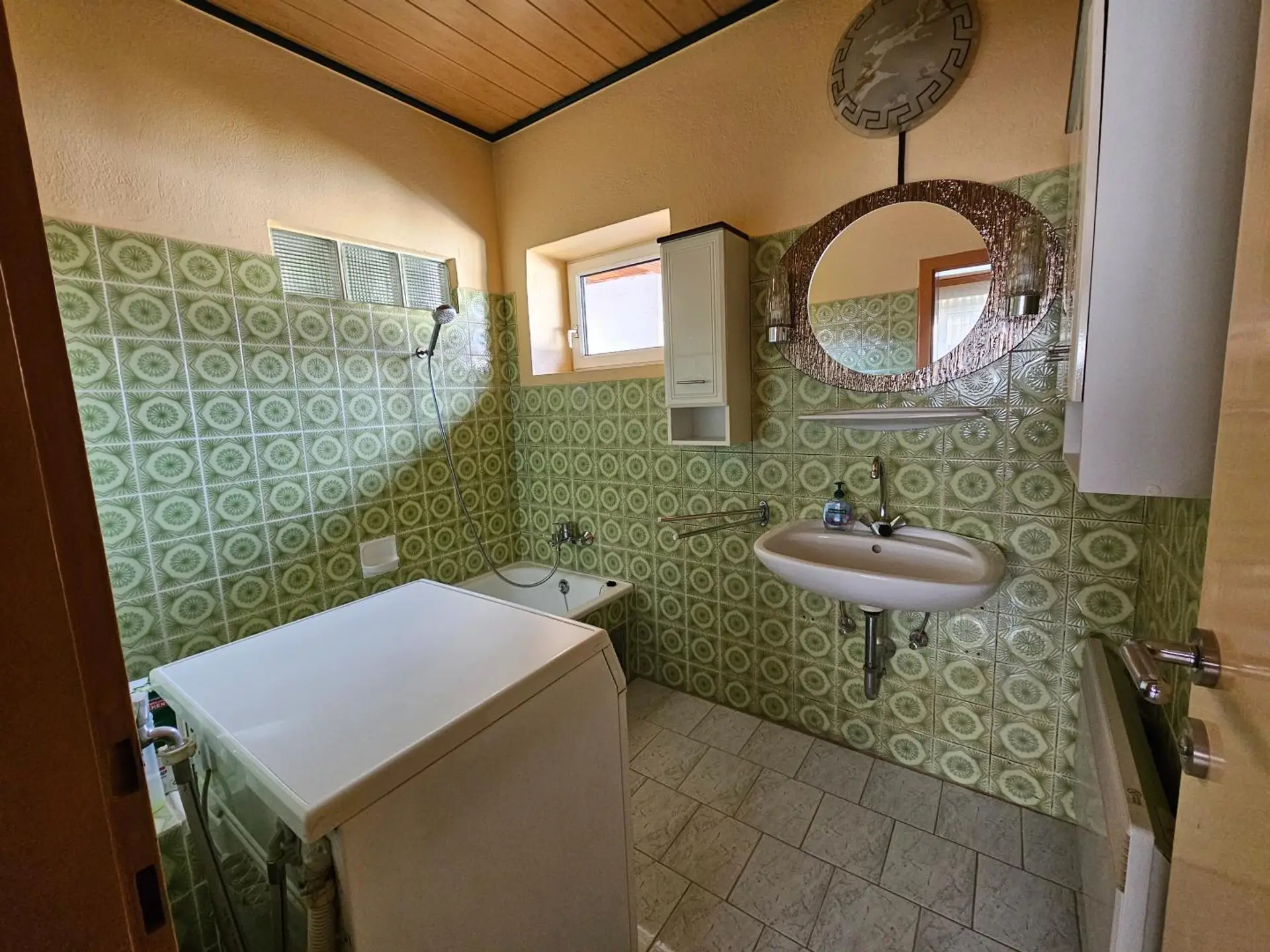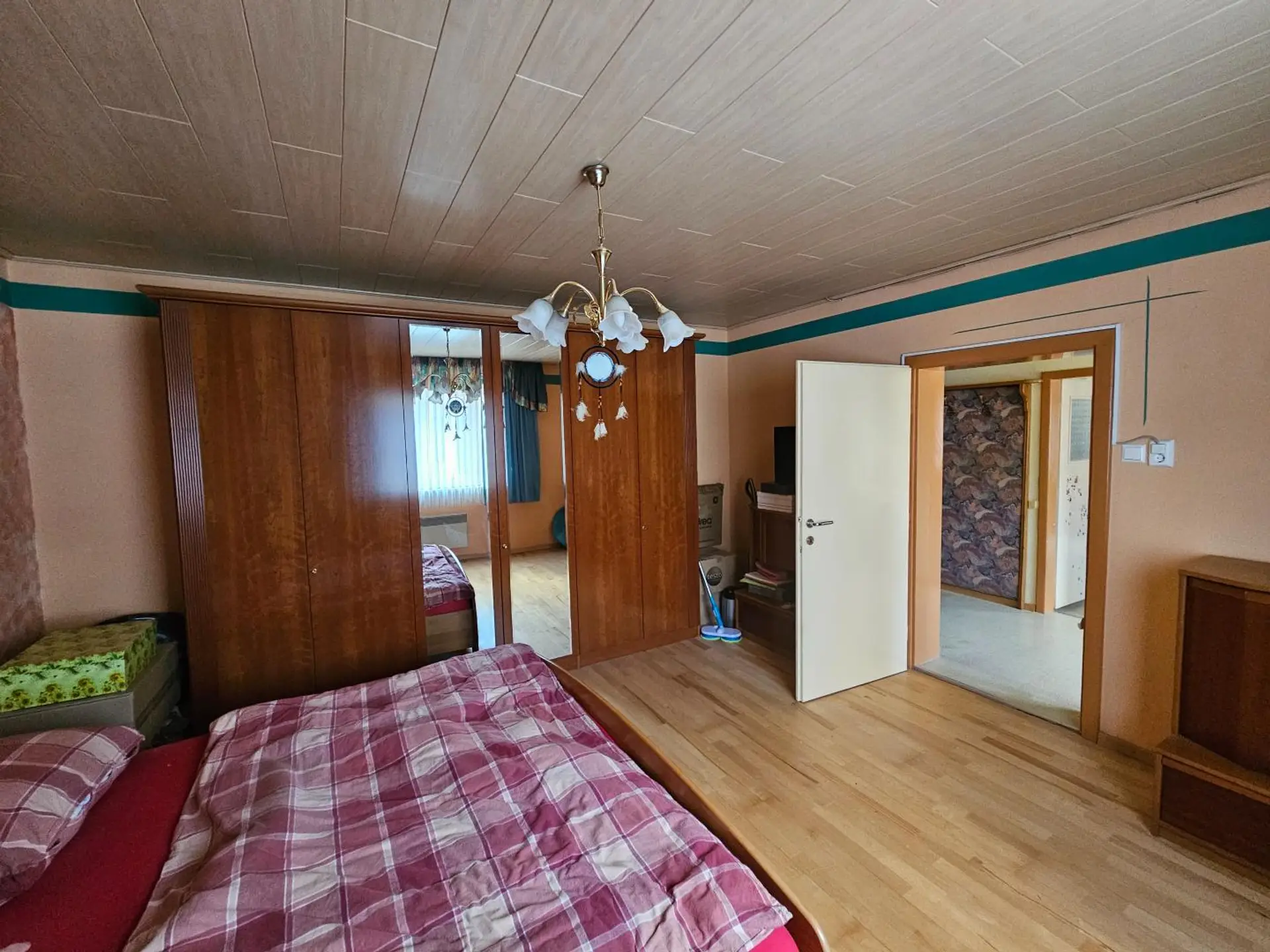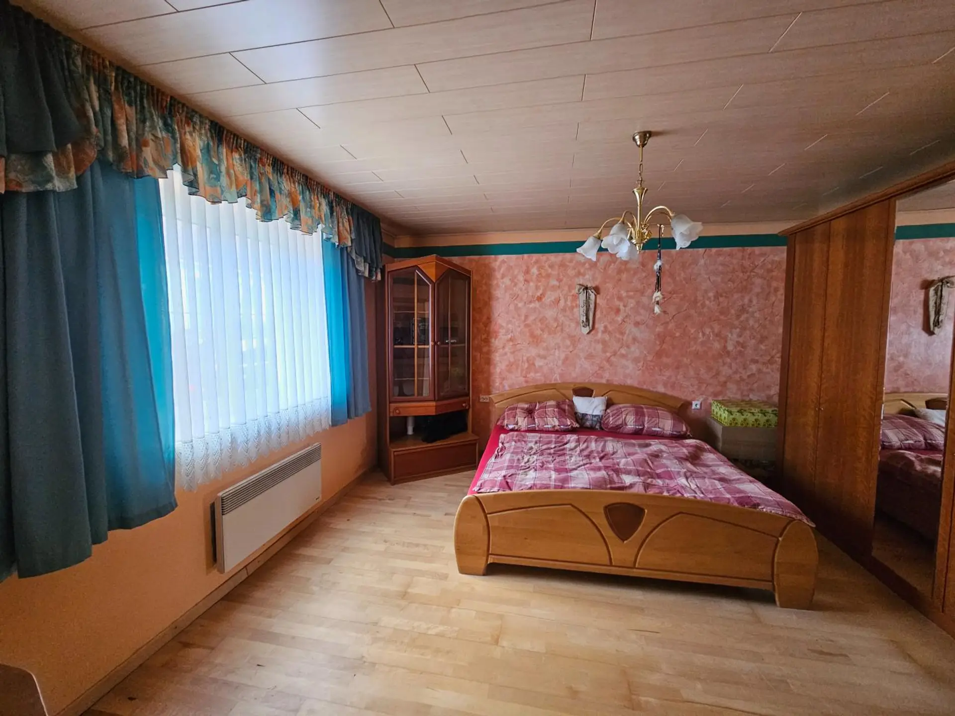 Das Haus wird mit einem Pelletsofen in der Küche geheizt und eine Elektroheizung.