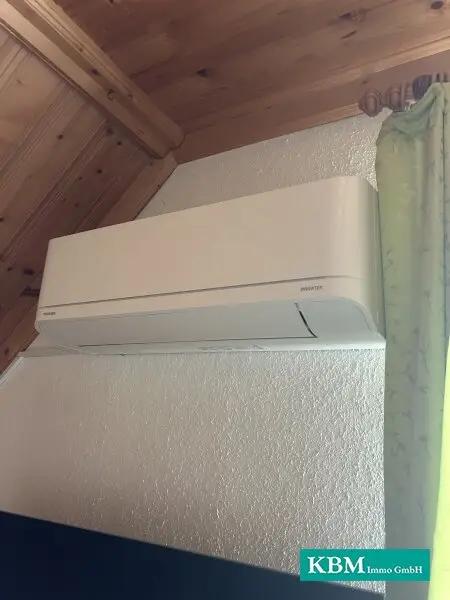 Im Dachgeschoss auf ca. 50m² finden sie 1 Schlafzimmer mit Garderobe und Klimaanlage, sowie ein Kinderzimmer, ein Kabinett und den Zugang zum Dachboden.