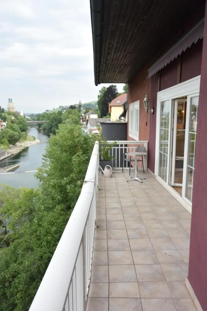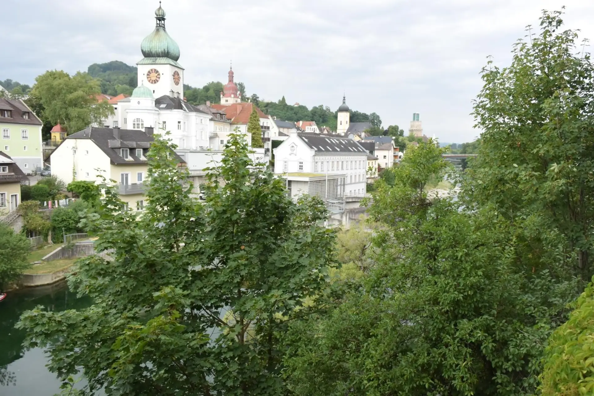 Von den beiden Terrassen genießt man einen herrlichen Blick über die Ybbs zur "Stadt der Türme".