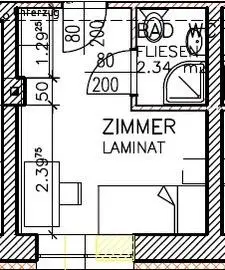 Die Wohnfläche umfasst ca. 14,05 m² und beinhaltet einen Wohn-Küchen und Schlafbereich sowie ein Badezimmer mit Dusche und WC.