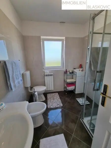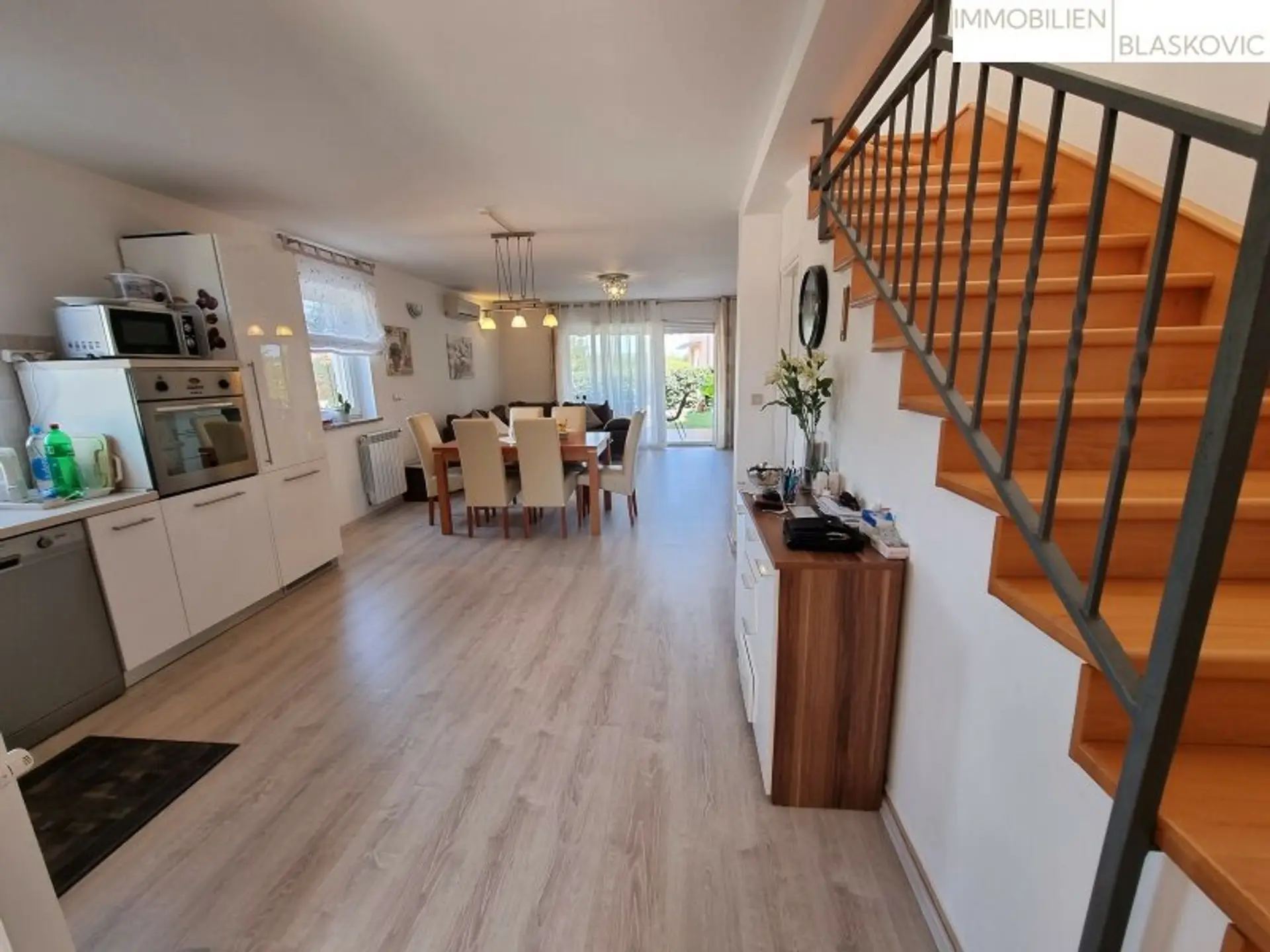 Dieses gepflegte Reihenhaus befindet sich in einer kleinen istrischen Stadt in der Nähe von Porec. Das Haus liegt ruhig gelegen mit Blick in die Natur und bietet eine Nutzfläche von knapp 106 m2 mit einem eigenem Garten von ca. 290 m2. Es wurde 2008 gebaut. Zum Meer sind es nur ca. 3 km und das Ortszentrum ist fußläufig problemlos erreichbar.