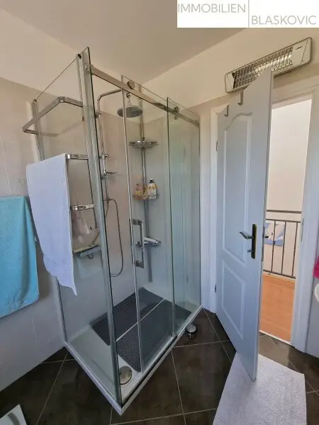 Im Obergeschoss befinden sich drei Schlafzimmer, wovon zwei dieser Schlafzimmer über einen eigenem Balkon verfügen. Auch ein großes Badezimmer mit Dusche ist im 1. OG untergebracht,