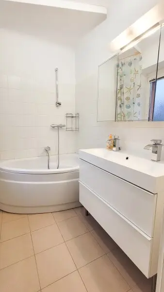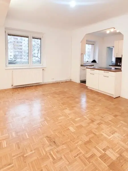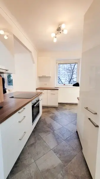Geräumige 3-Zimmer-Wohnung mit einer moderne offen gestalteten Einbauküche, praktischer Abstellkammer, separater Toilette sowie einem hellen Badezimmer mit Badewanne – ideal für Familien oder Paare, die großzügigen Wohnkomfort schätzen.