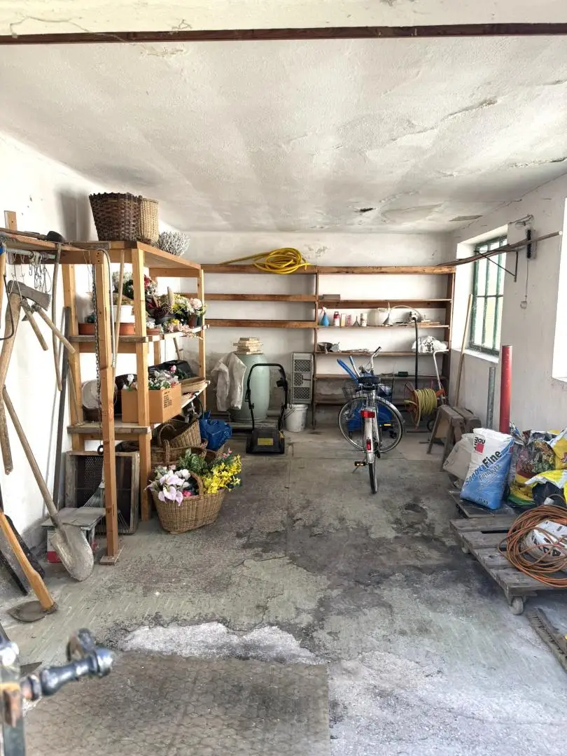 Zudem verfügt die Liegenschaft über eine vollständig geschlossene Einfahrt sowie eine ehemalige Garage, die aktuell als Lagerraum genutzt wird.
