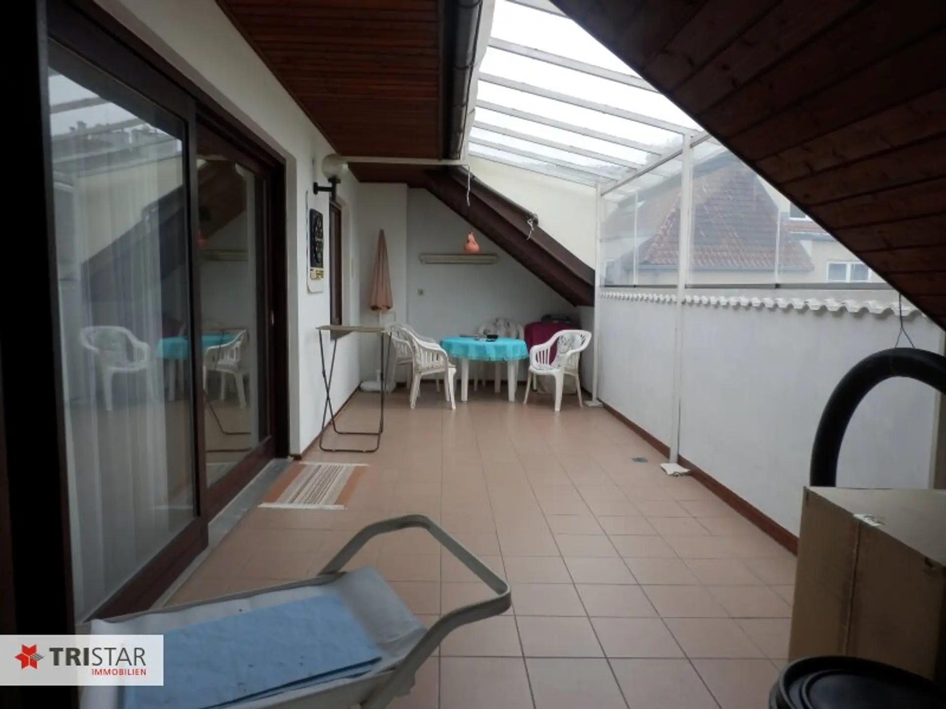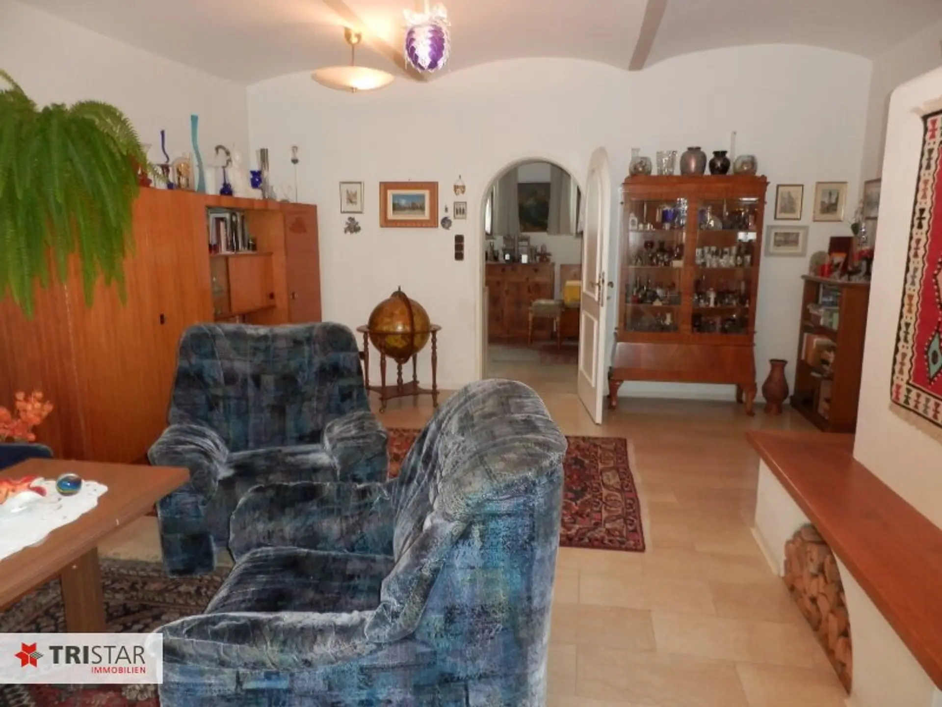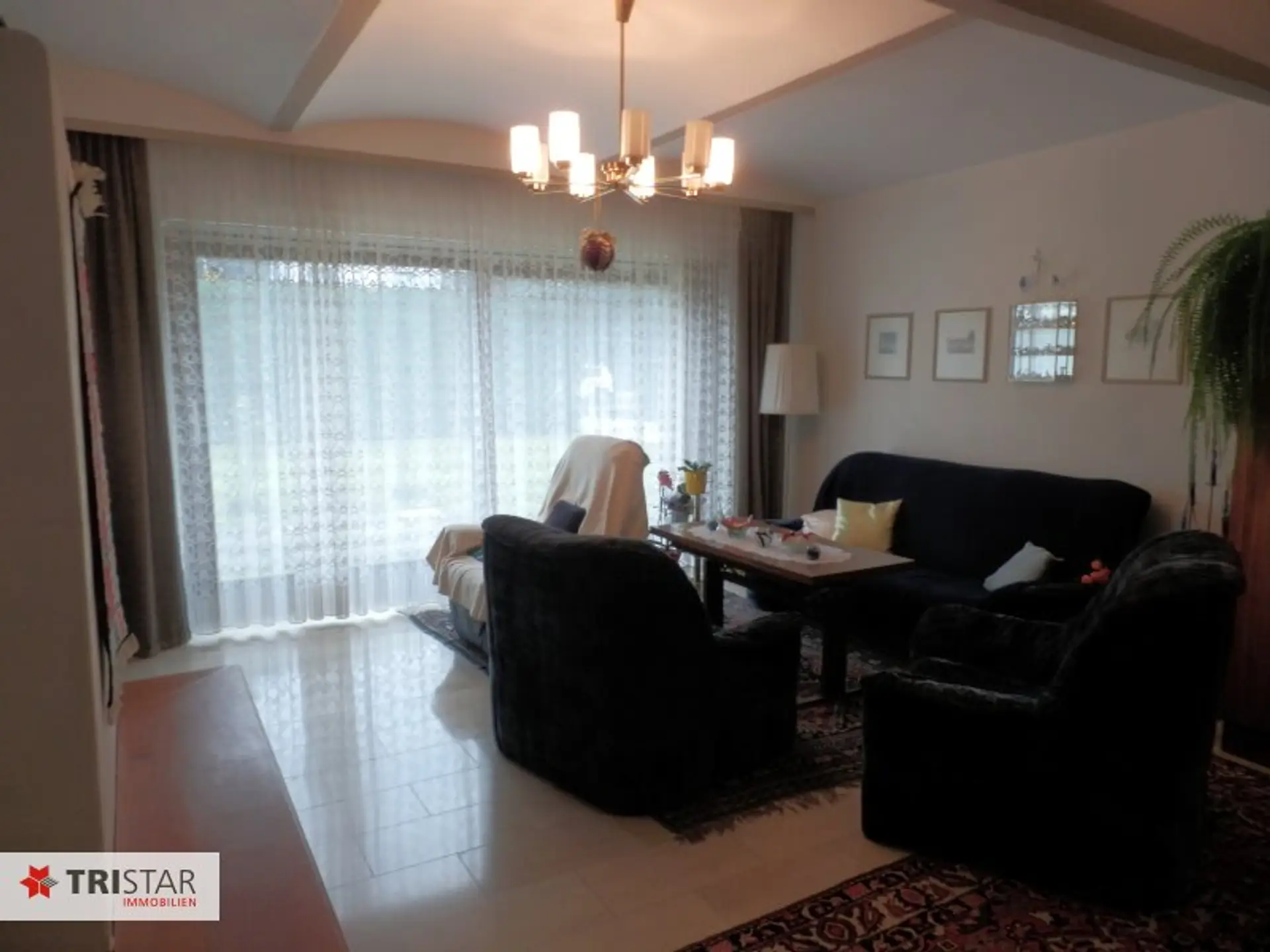 - Wohnzimmer mit Ausgang auf die westseitig ausgerichtete, verglaste, mit zu öffnenden Elementen ausgestattete Terrasse