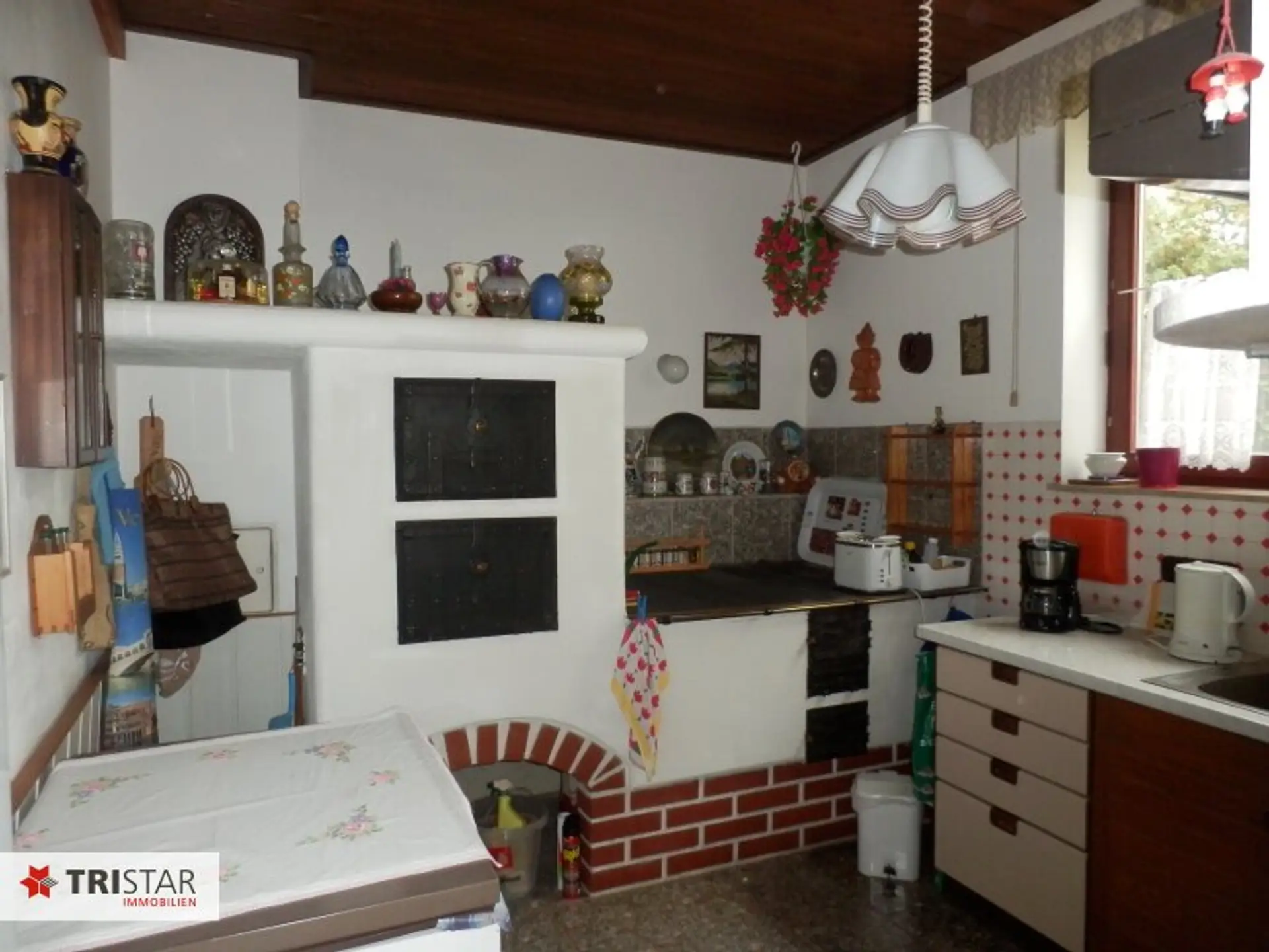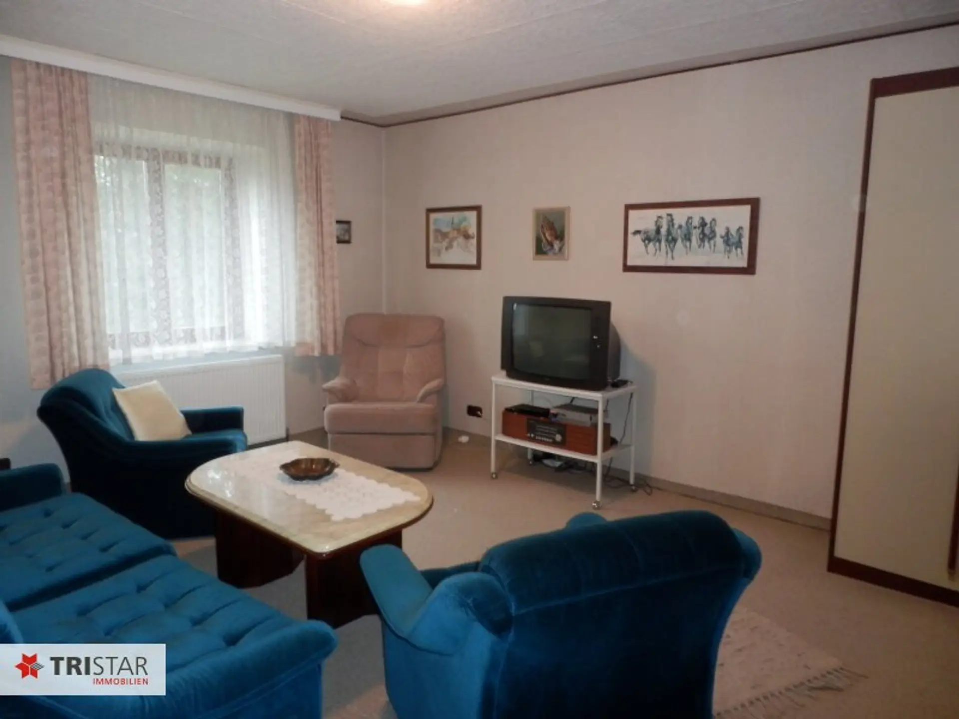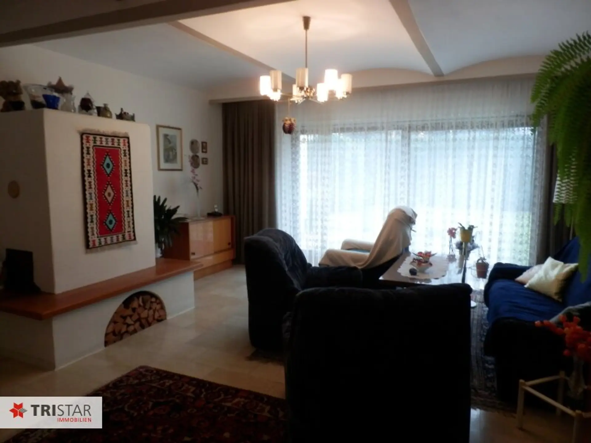 - gemütliches Wohnzimmer mit Kachelofen und Schiebetüren (zum Garten mit Terrasse)