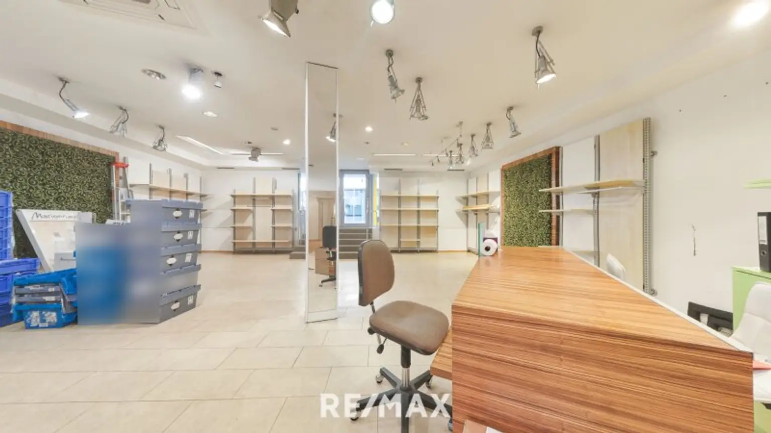 Die Gesamtfläche von ca. 175 m² erstreckt sich über das Erdgeschoss mit rund 90 m² Verkaufsfläche sowie über ca. 85 m² im Untergeschoss, welches flexibel als Verkaufs-, Lager- oder Bürofläche genutzt werden kann.
