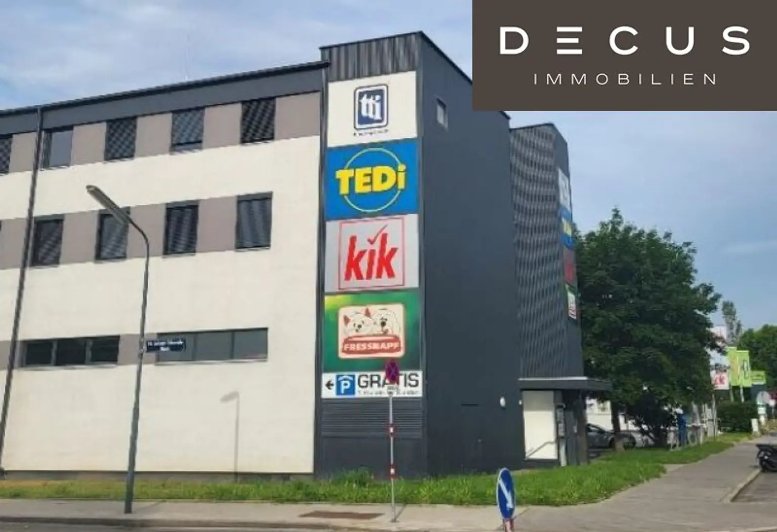 Das FMZ Albert-Schweitzer-Gasse besticht allen voran durch seine Verkehrsanbindung und die Nähe zum benachbarten Auhof-Center, sowie durch seine hauseigene Garage und Kundenstellplätze vor den Geschäften. Im FMZ befinden sich die Shops der Firmen Cube (ehem. KiK Fläche), NKD und Fressnapf. Des Weiteren befindet sich am Standort das Büro der KiK Zentrale sowie der Firma TTI.