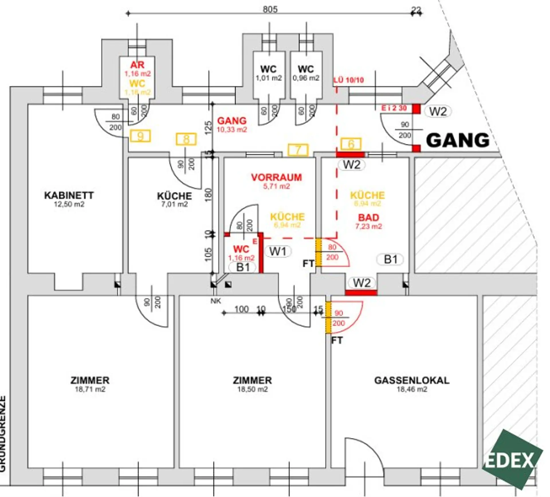 Das Objekt wird übergeben wie liegt und steht und besteht aktuell aus einer Fläche. Eine Zusammenlegung mit der Nachbarfläche samt Sanierung in Absprache mit dem Eigentümer ist möglich.