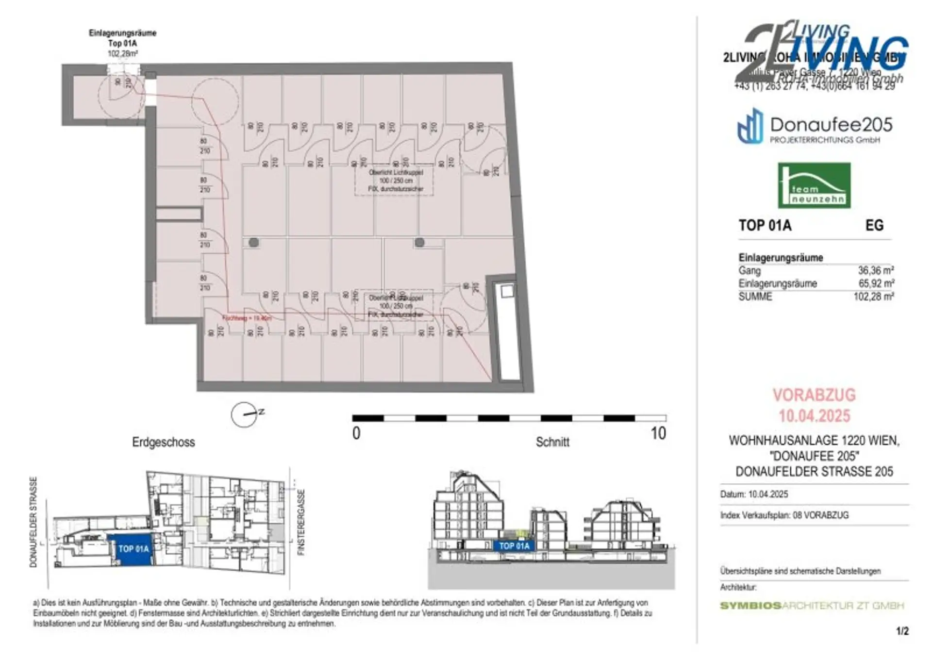 Das Neubauprojekt befindet sich in der ruhigen und grünen Gegend des 22. Bezirks, unweit des U-Bahn-Knotenpunkts Kagraner Platz (U1). Damit ist der Standort sowohl für Kund:innen als auch für Mitarbeitende optimal erreichbar.
