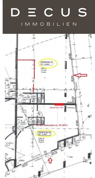 die beiden dzt. nur durch eine Innentür, verbundenen Einheiten (ca. 181,06 m³) können geteilt werden: