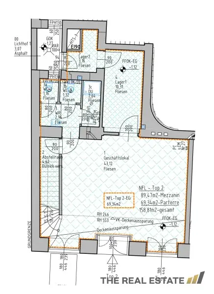 Das Erdgeschoss mit seinen ca. 70m2 ist von der Straße aus barrierefrei zu betreten. Durch die großen Auslagefenster und die mit Glas versehene Eingangstüre wird der Raum gut mit Tageslicht versorgt und ist gut sichtbar.