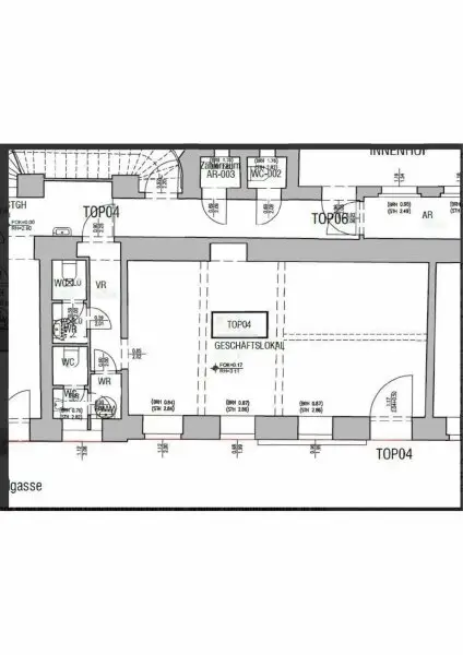 Die insgesamt 45m² große Fläche besteht aus einem großen Geschäftsraum, einer Toilette mit einem Handwaschbecken, einem Abstellraum und einer Auslage.