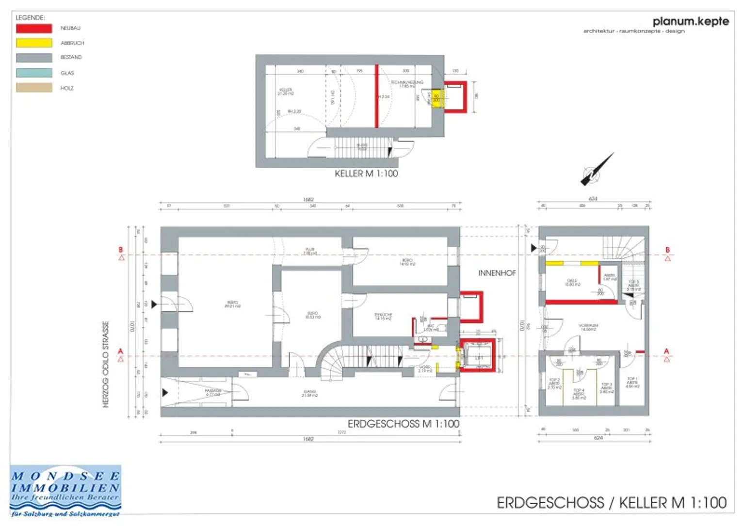 * Geschäftslokal mit ca. 95 m2 Nutzfläche bestehend aus: großer Büroraum, ein Besprechungsraum, eine kleine Teeküche, Abstellraum, WC